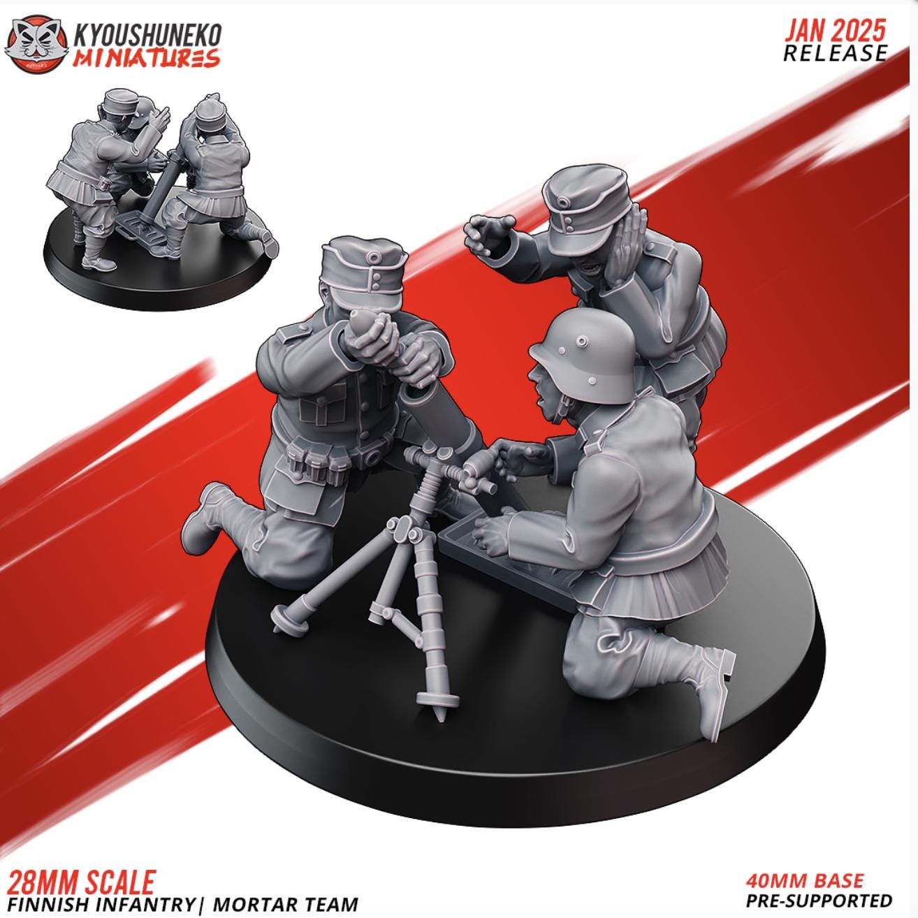 28mm Resin Printed Second World War -Mortar Team | Finnish Infantry ww2