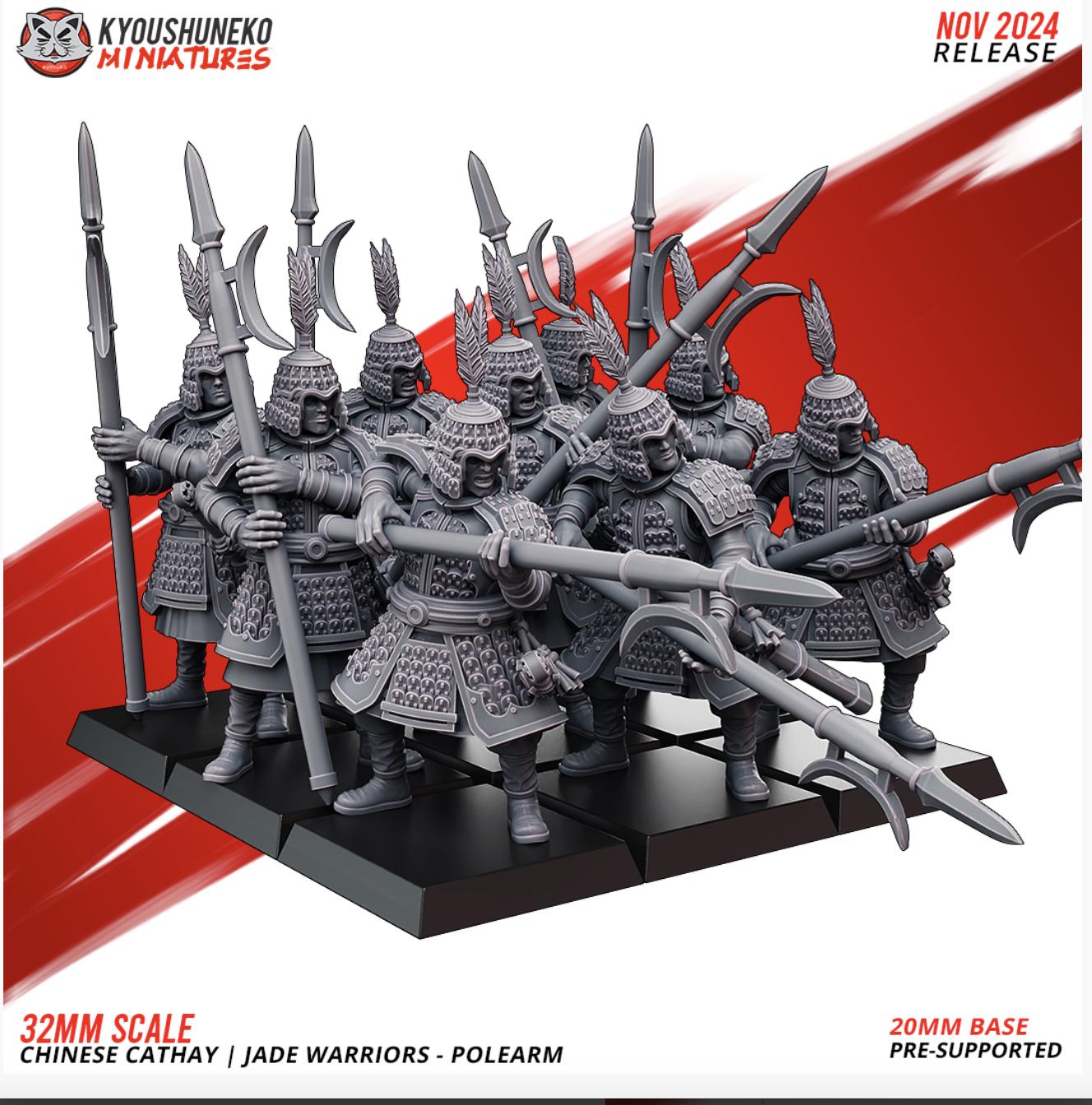 Resin Printed Fantasy - Polearm - Jade Warriors | Chinese Cathay- Squad of 15