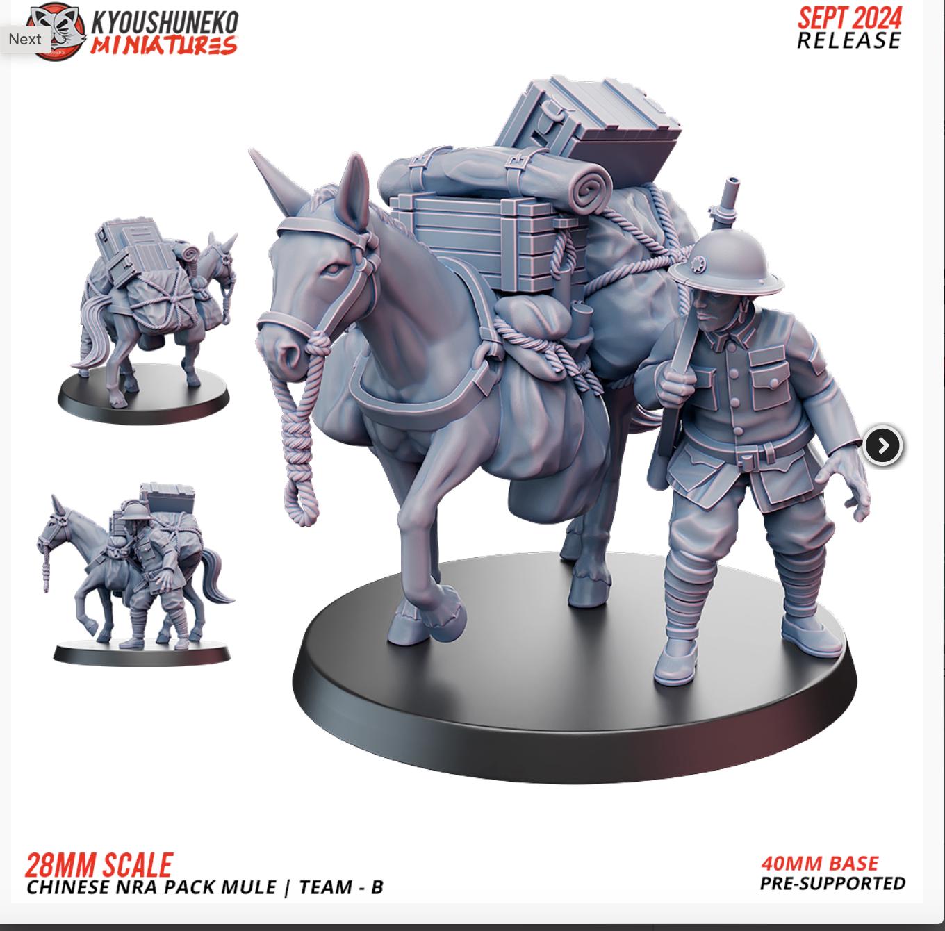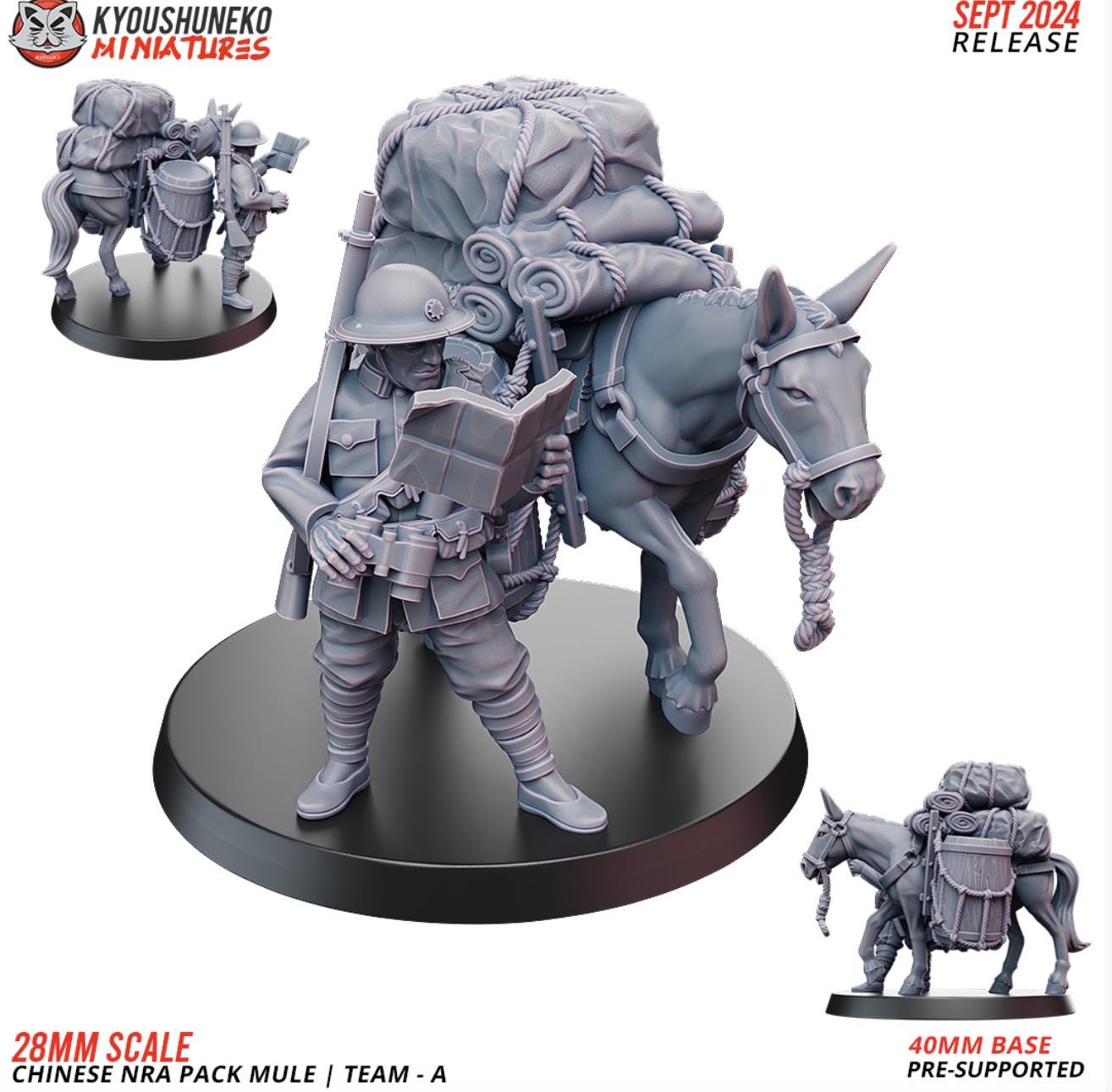 28mm Resin Printed Second World War -Chinese NRA Pack Mule | ww2-Squad of 3