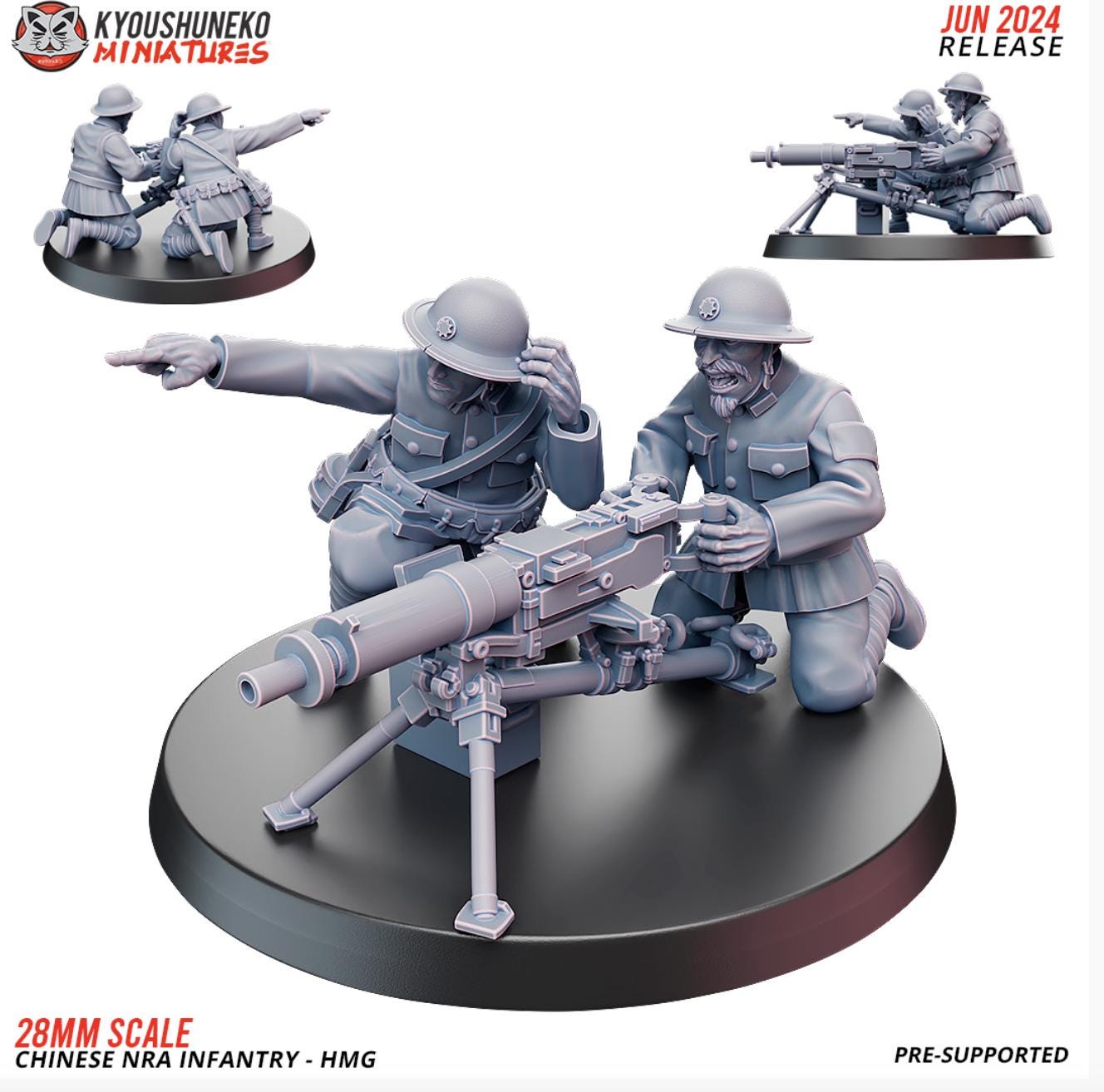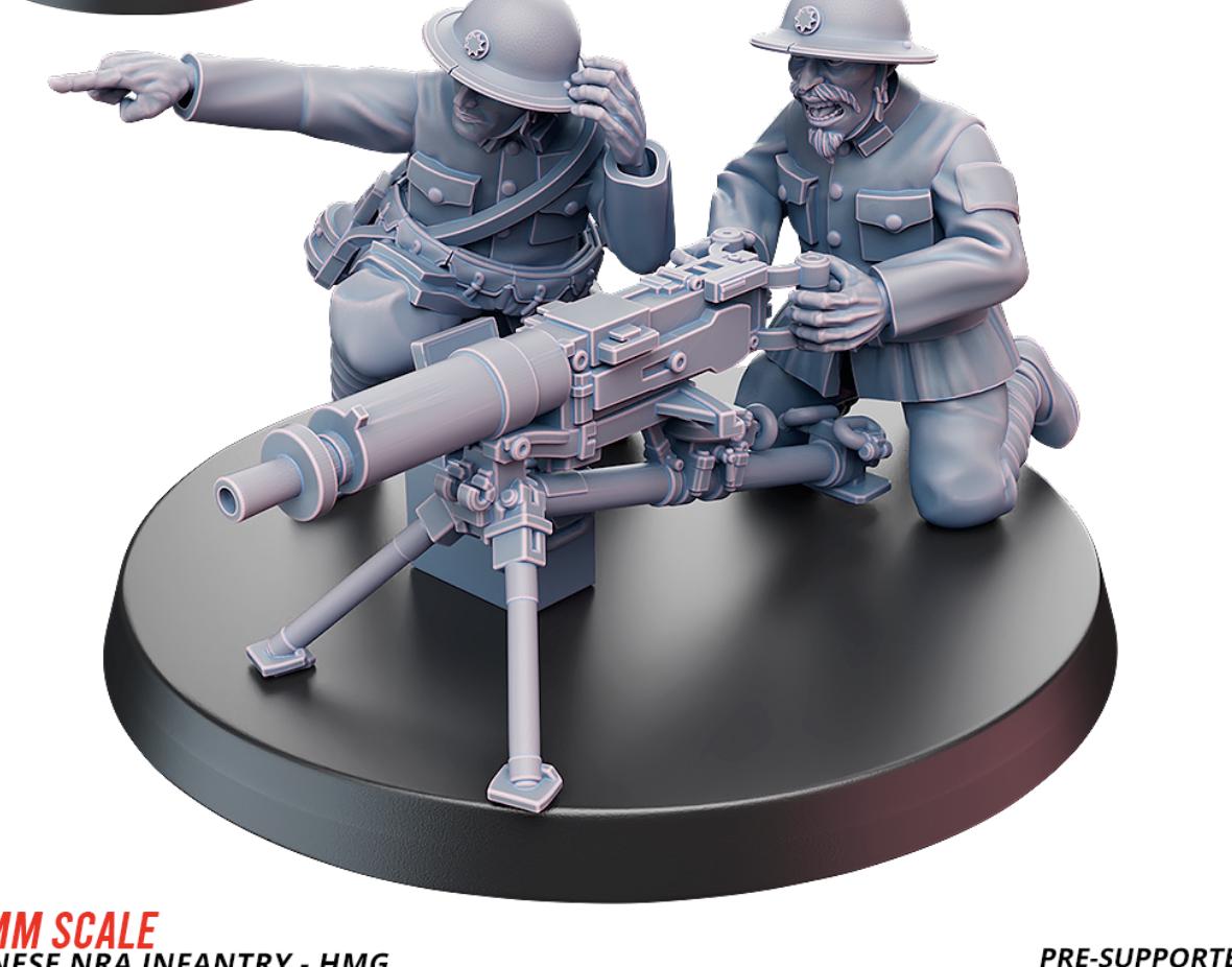 28mm Resin Printed Second World War -HMG Team - Chinese NRA Infantry ww2