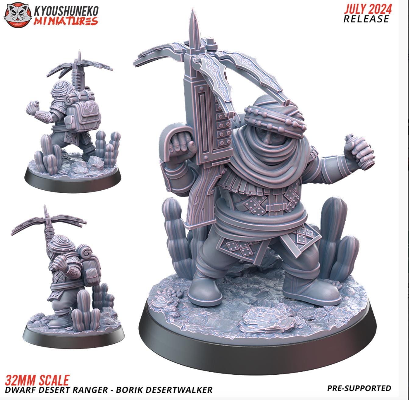 Resin Printed Fantasy Dwarf Desert Ranger - Borik Desertwalker
