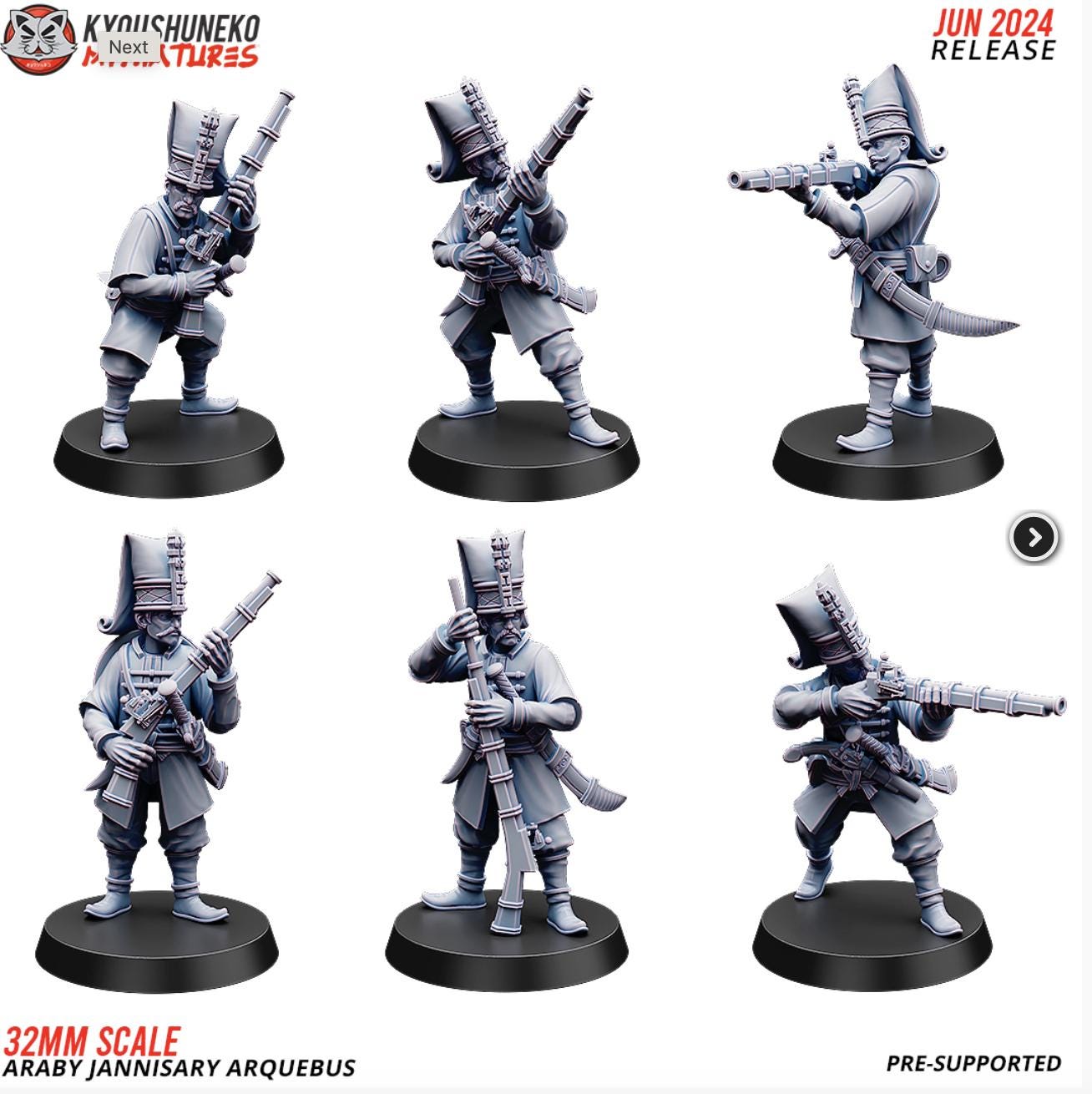Resin Printed Fantasy -Araby Jannisary Arquebus-Squad of 15