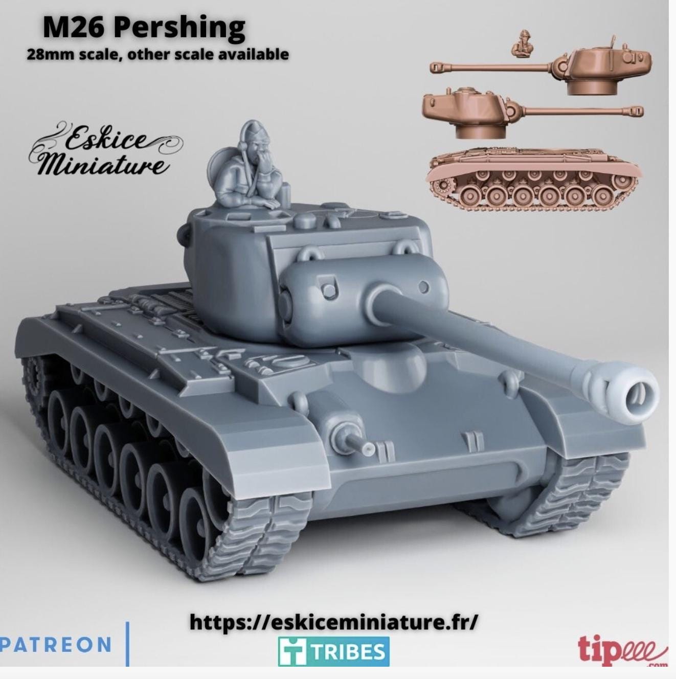 28mm World War 2 Resin Printed-M26 Pershing tank (US, WWII)