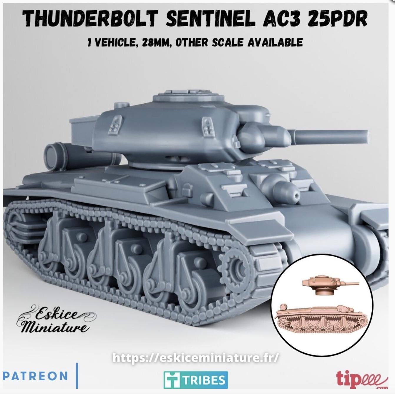 28mm World War 2 Resin Printed- Sentinel AC3 Thunderbolt 25pdr - 28mm