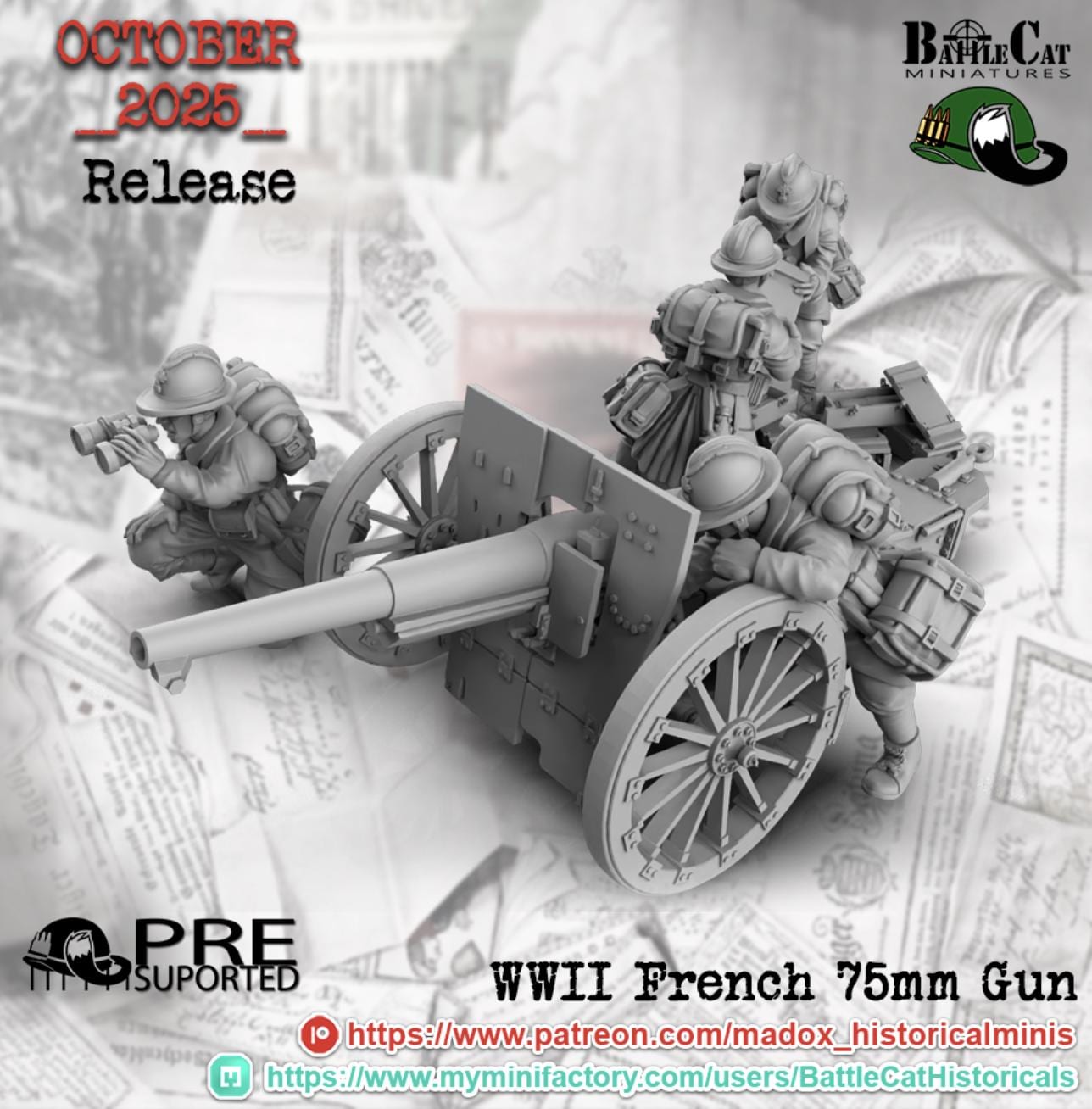 28mm World War 2- Resin Printed WWII French 75mm Artillery Cannon (3 Pack)