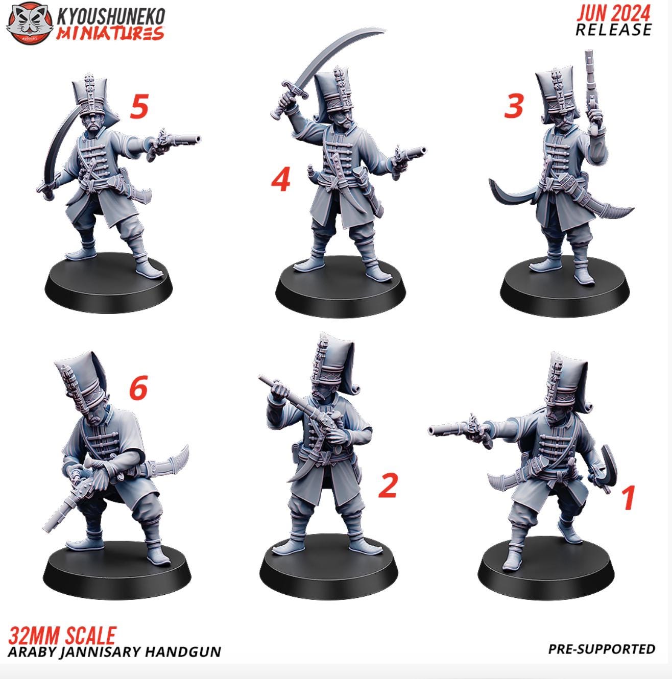 Resin Printed Fantasy -Araby Jannisary Handgun-Squad of 15