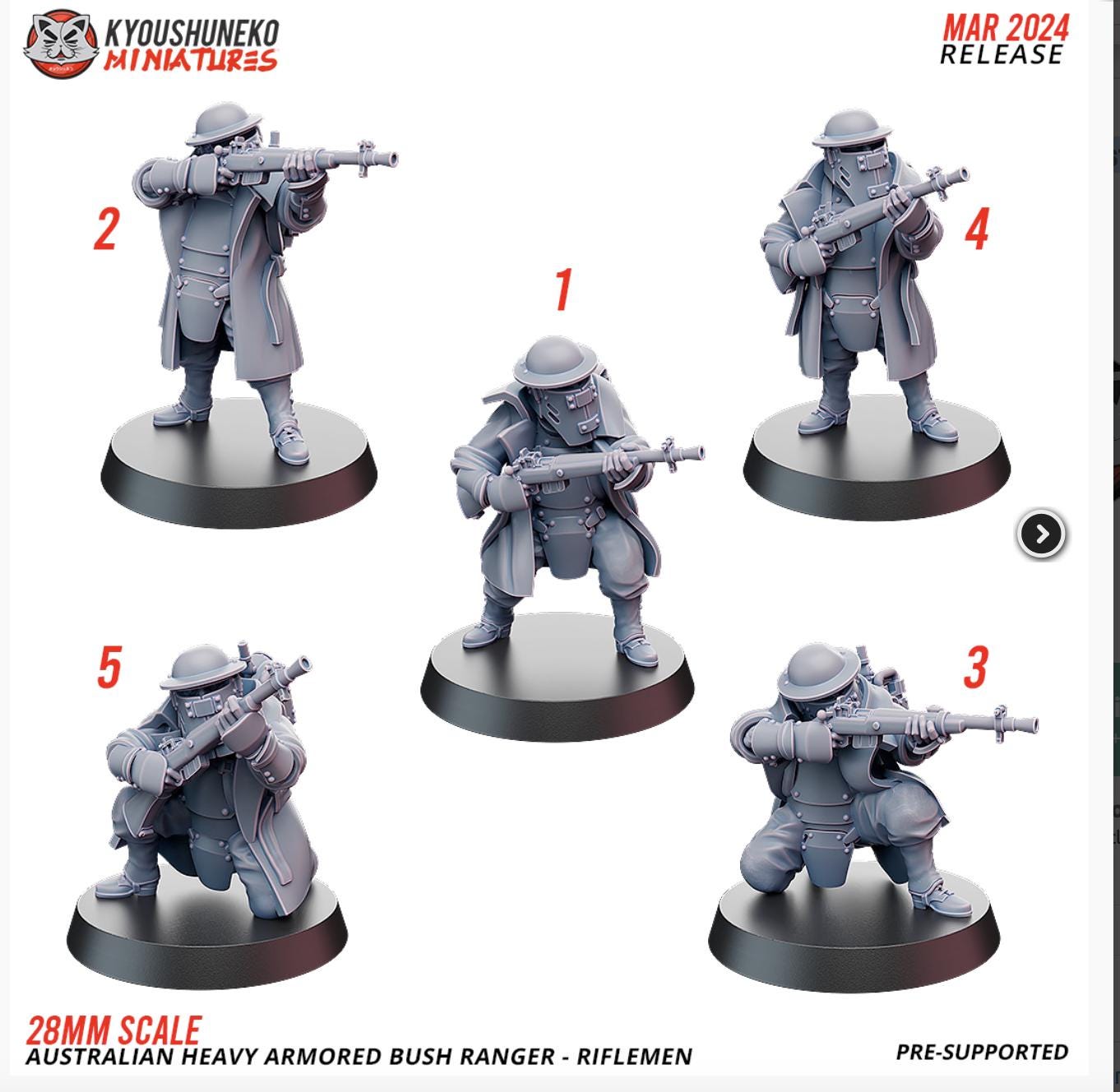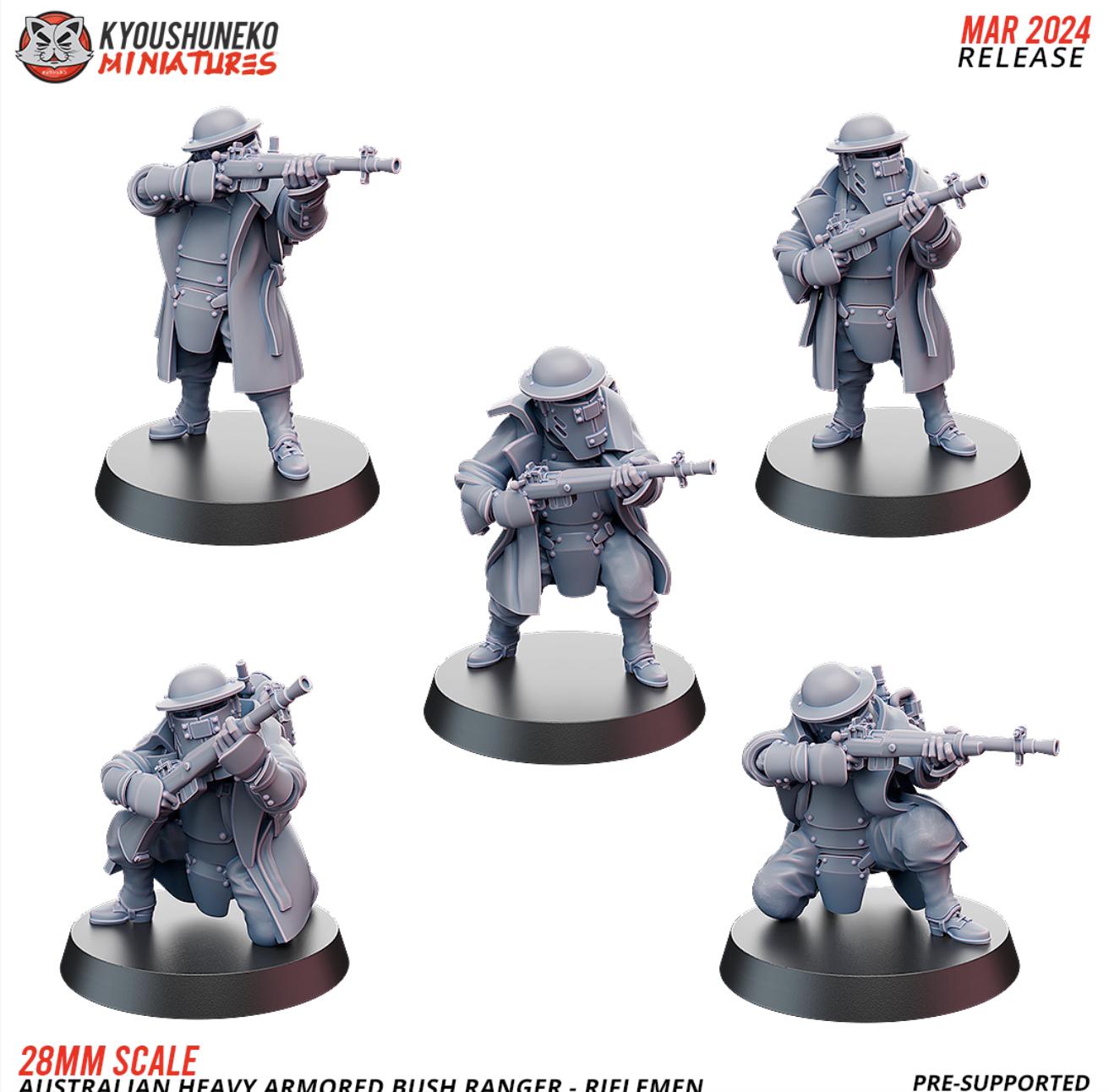 28mm Resin Printed Post-Modern Warfare - Riflemen - Australian Heavy Armored Bush Ranger ww2 Squad of 10