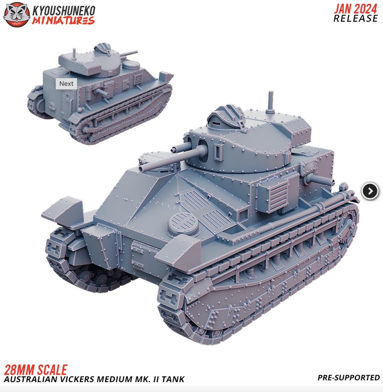 28mm World War 2 Resin Printed Vickers Medium MK II Tank - Australian Army ww2
