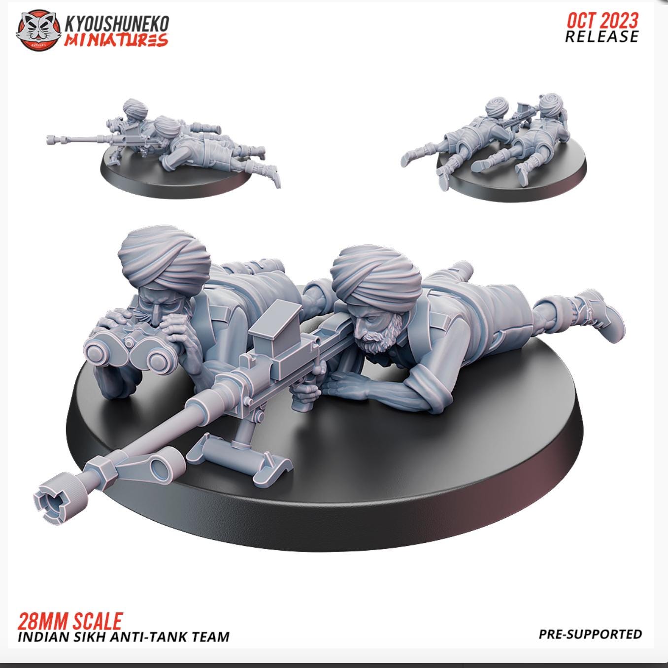 28mm Resin Printed Second World War- Weird War- Anti-Tank Team - Indian Sikh Infantry ww2