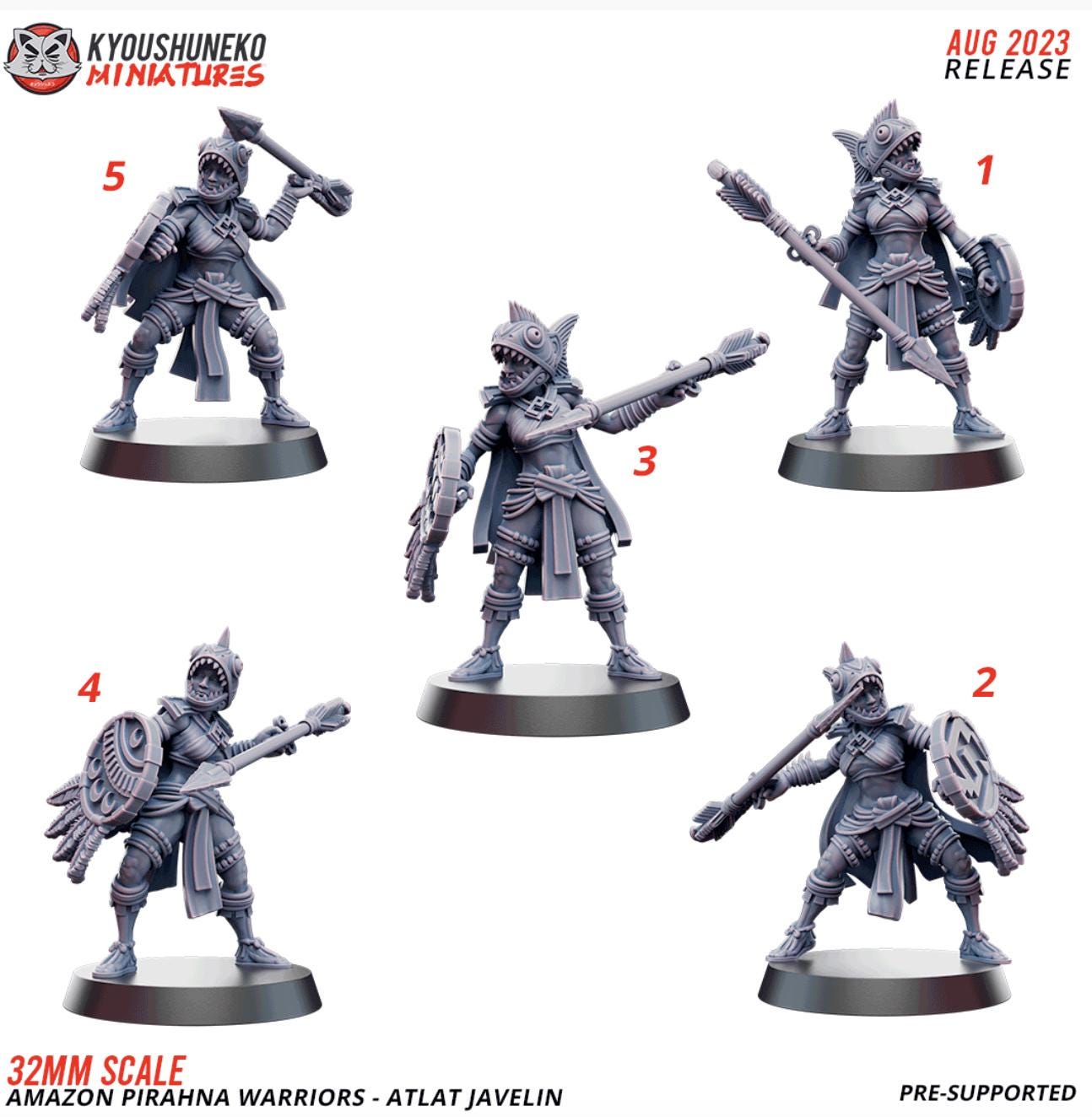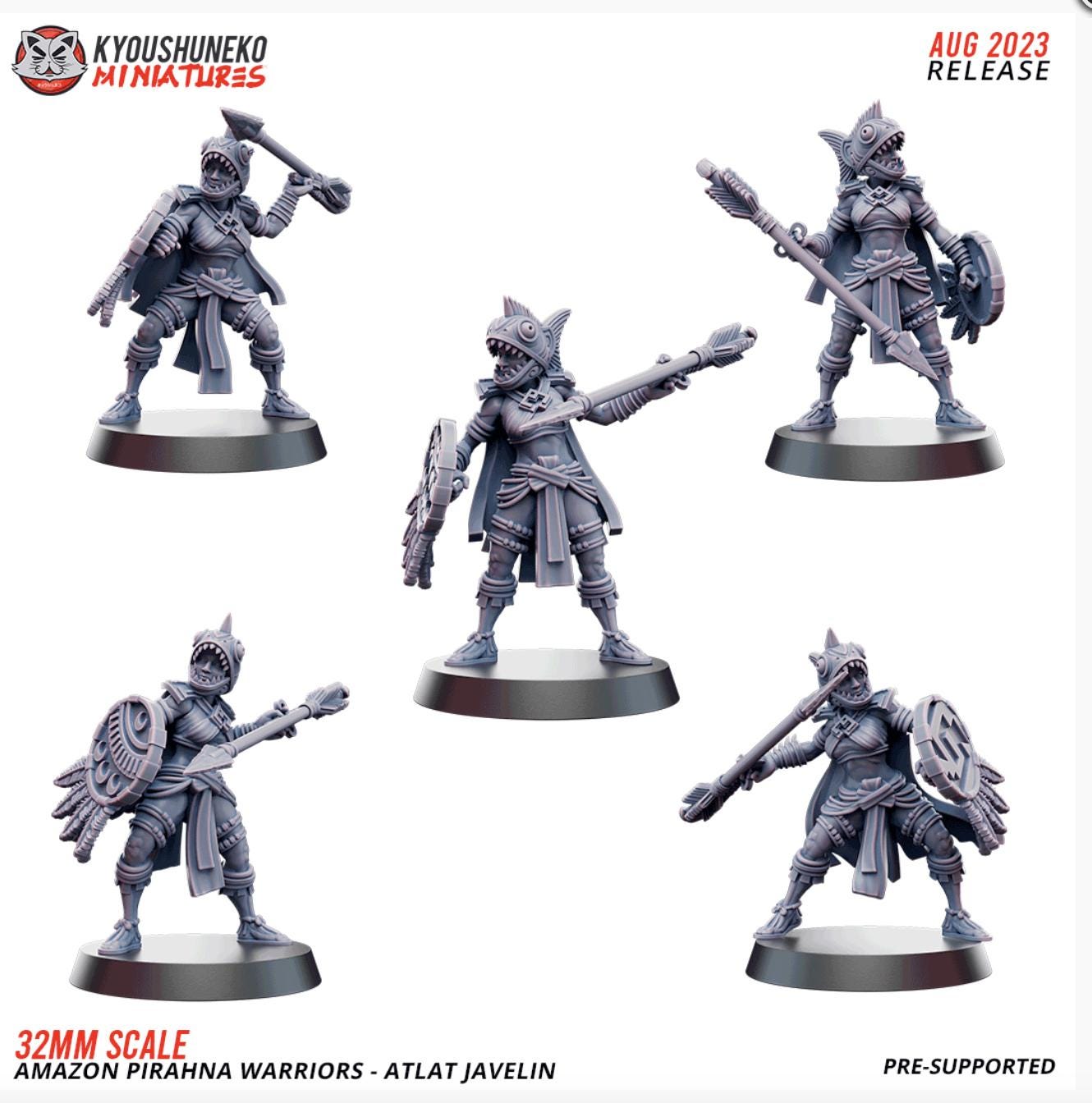 Resin Printed Fantasy -Atlat Javelin - Amazon Pirahna Warriors-Squad of 16
