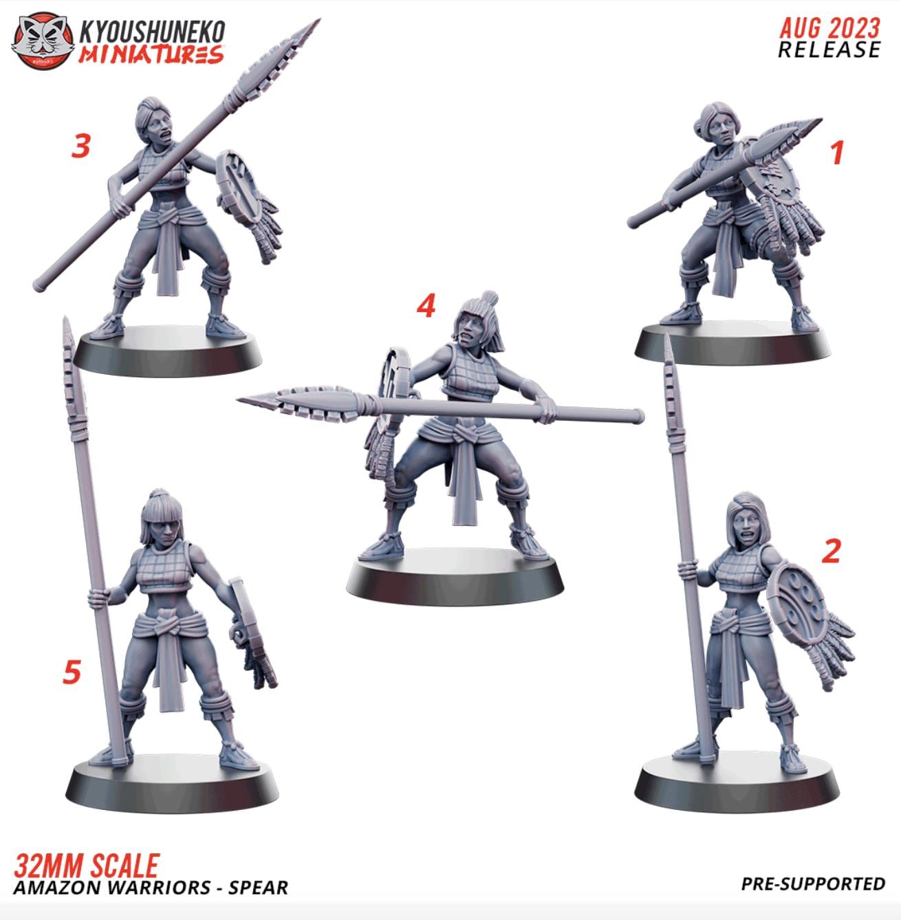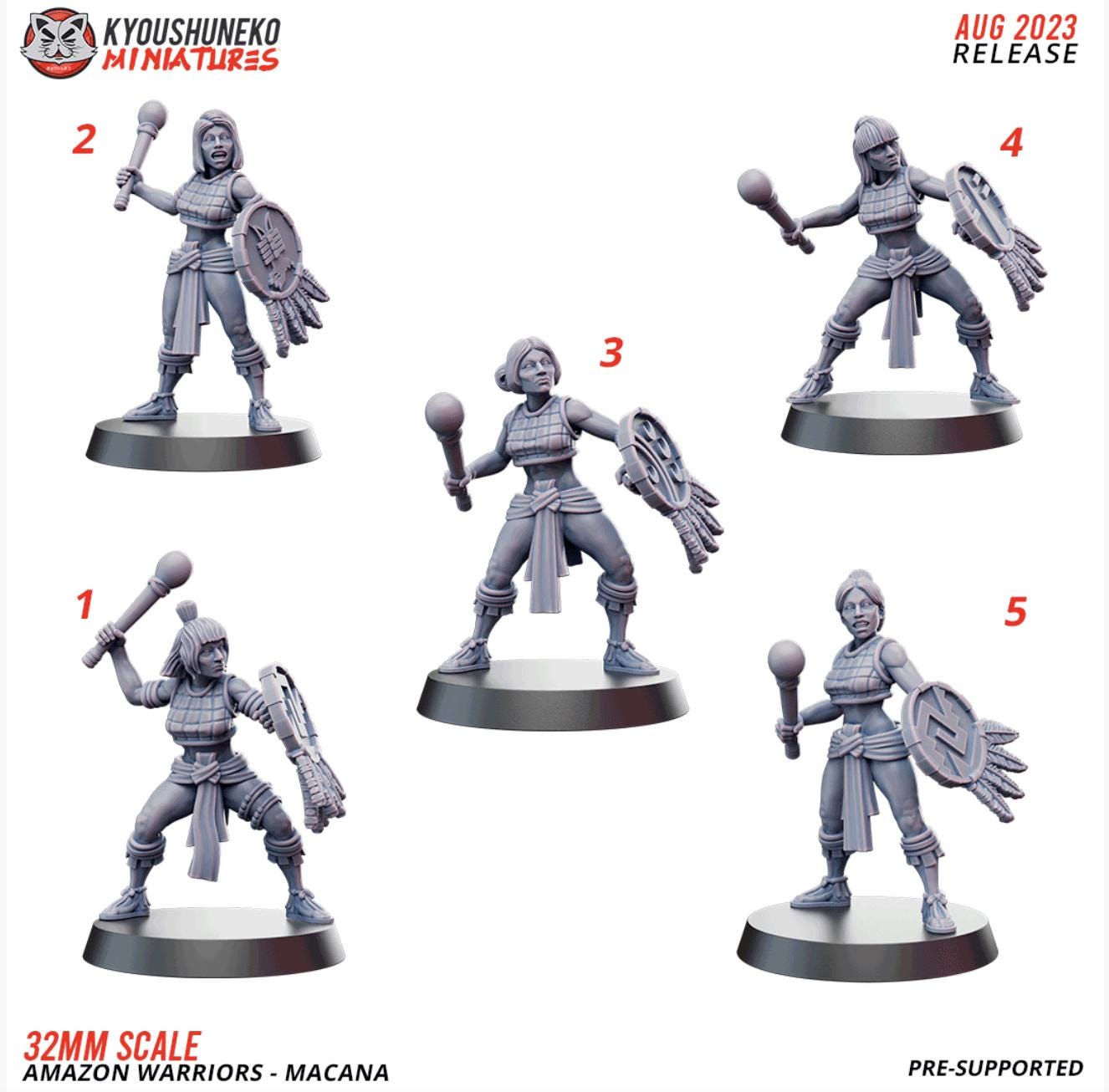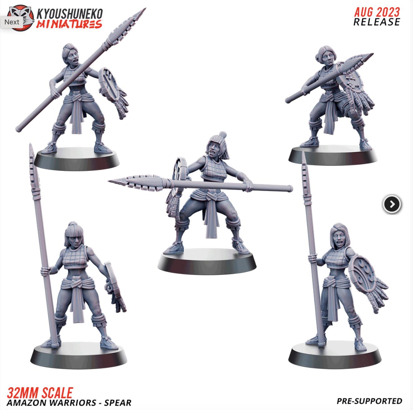 Resin Printed Fantasy -Macana - Amazon Warriors-Sword and Board or Spears and Board-Squad of 16
