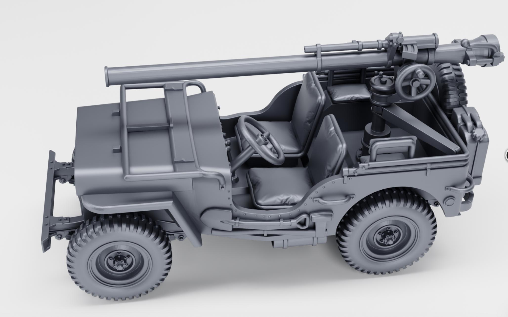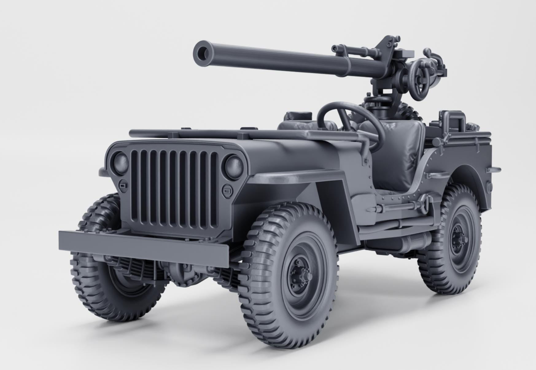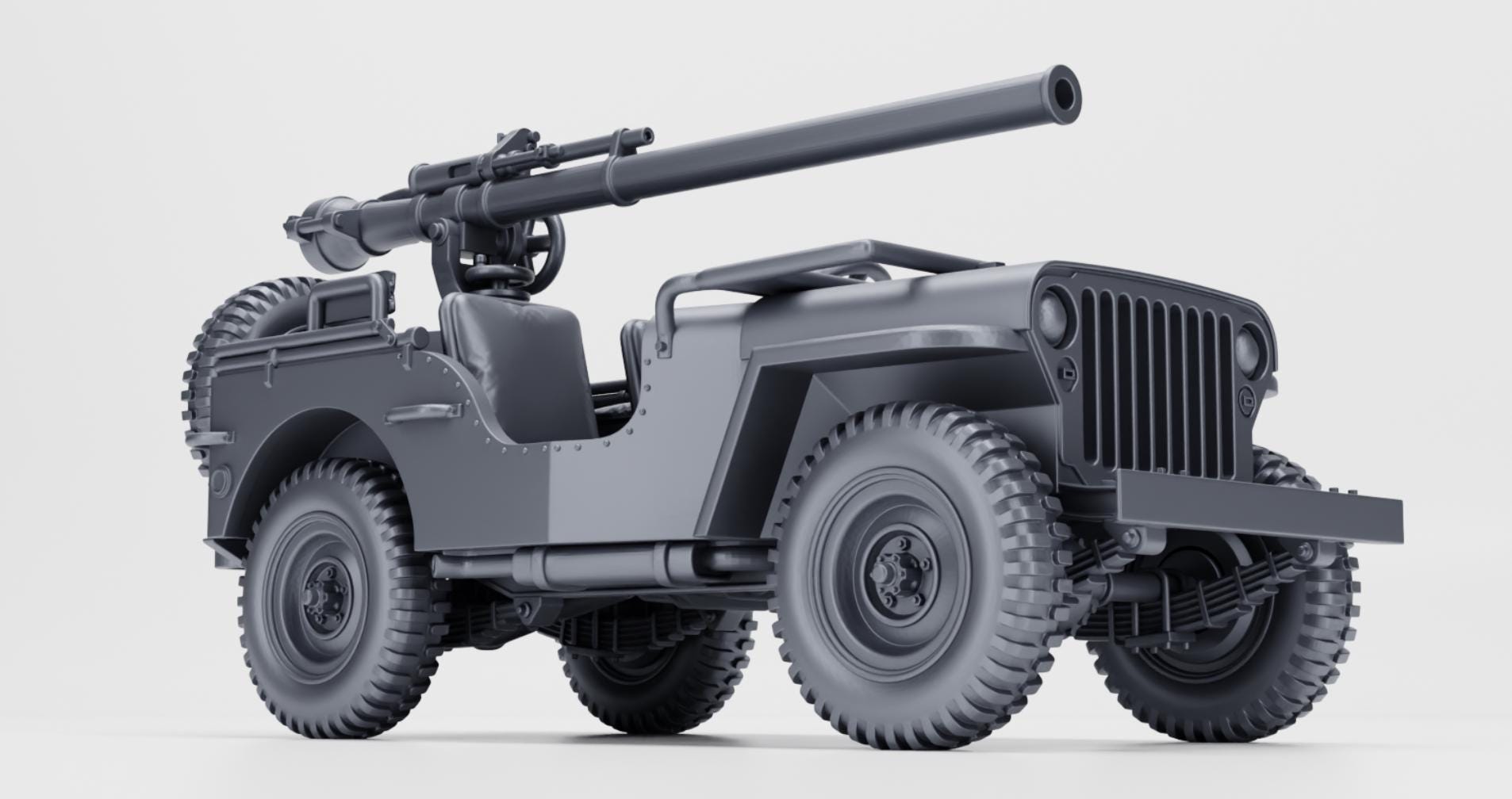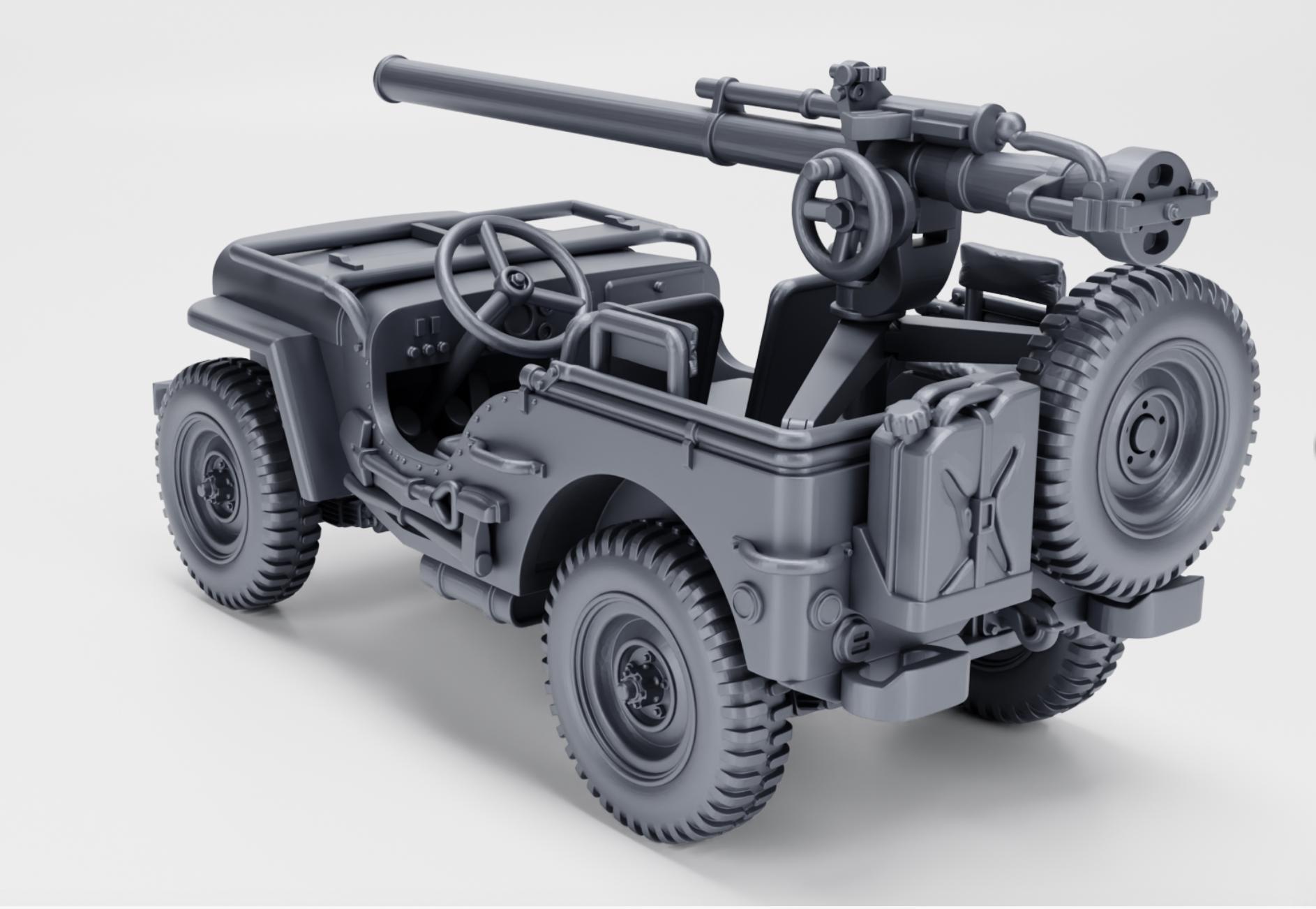 28mm World War 2 Resin Printed-Jeep Willys anti-tank (US, WW2)