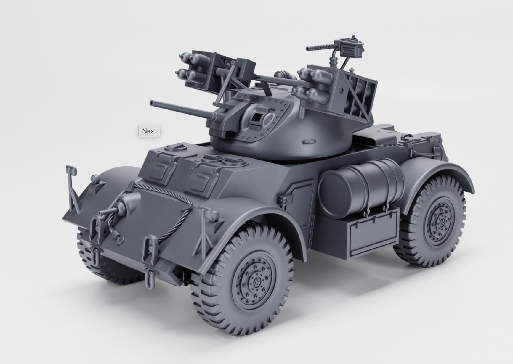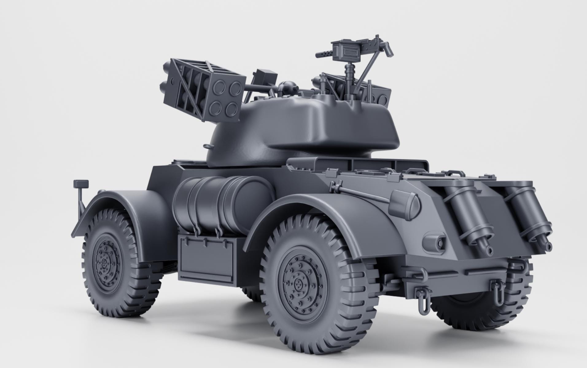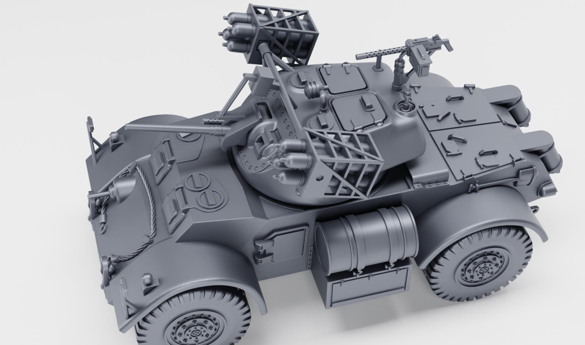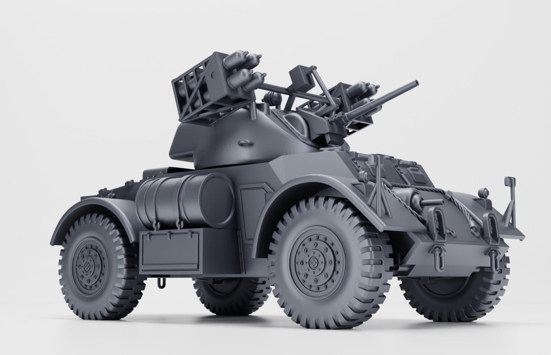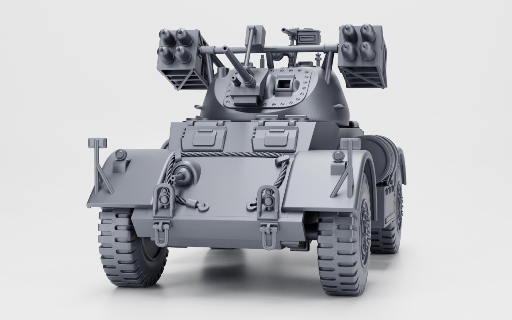 28mm World War 2 Resin Printed-Staghound Mk.I with Landmattress (8 Rockets) (US, WW2)