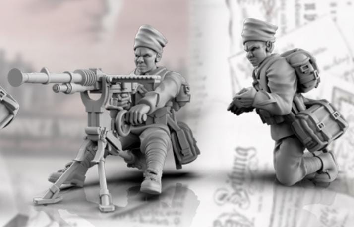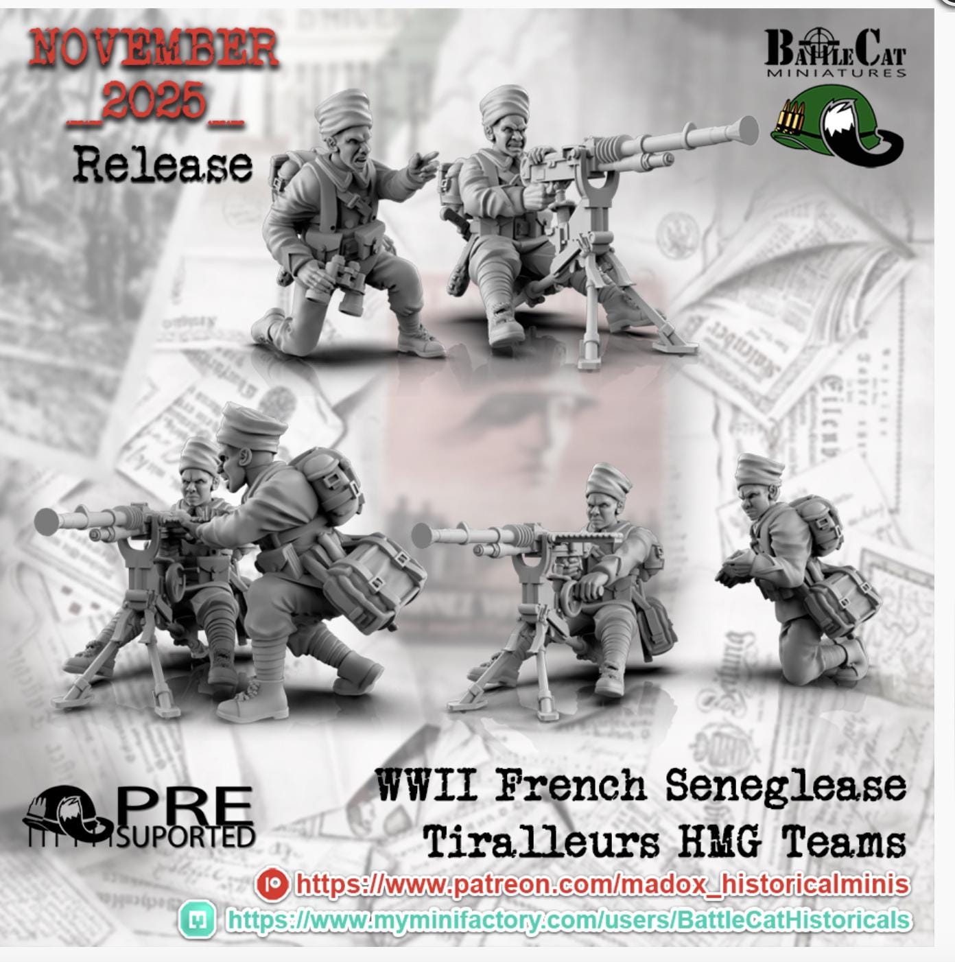28mm World War 2- Resin Printed WWII Seneglease Tiralleurs HMG teams (3 Pack)