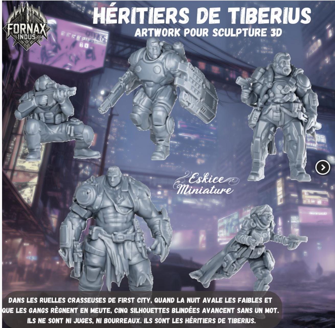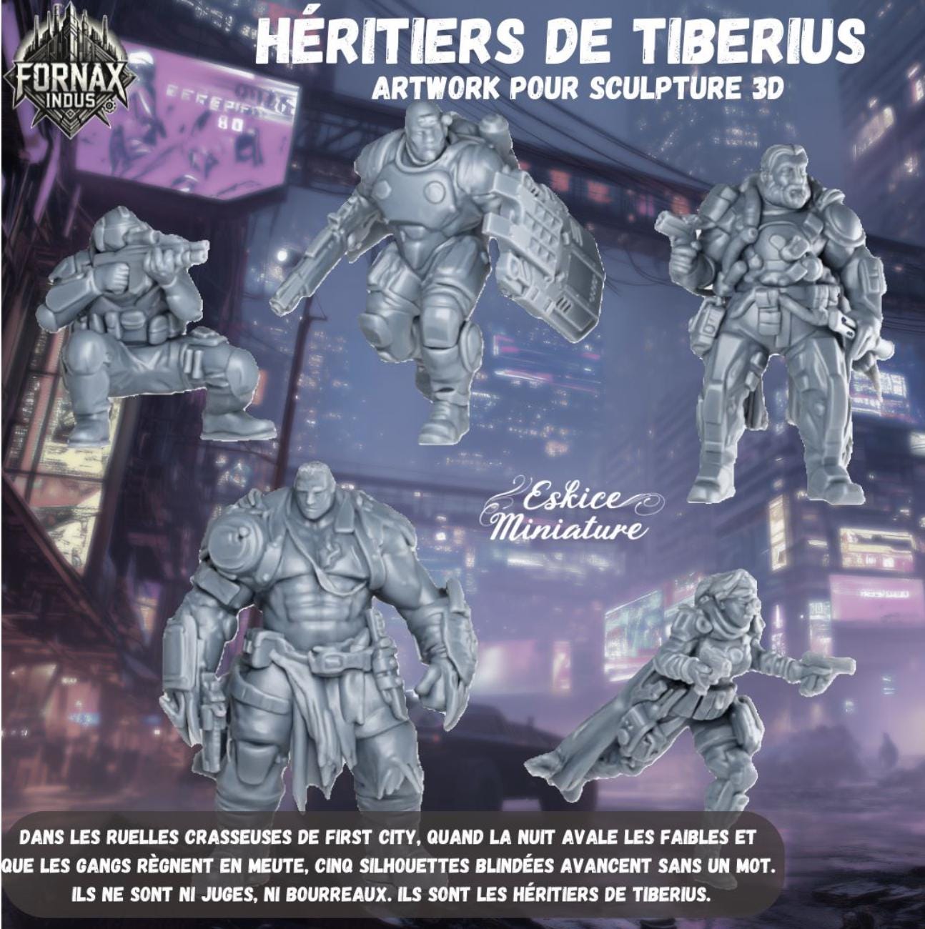 Resin Printed Post Apocalyptic Weird War- Tiberius Heirs - Fornax Indus Gang 32mm (5 models)