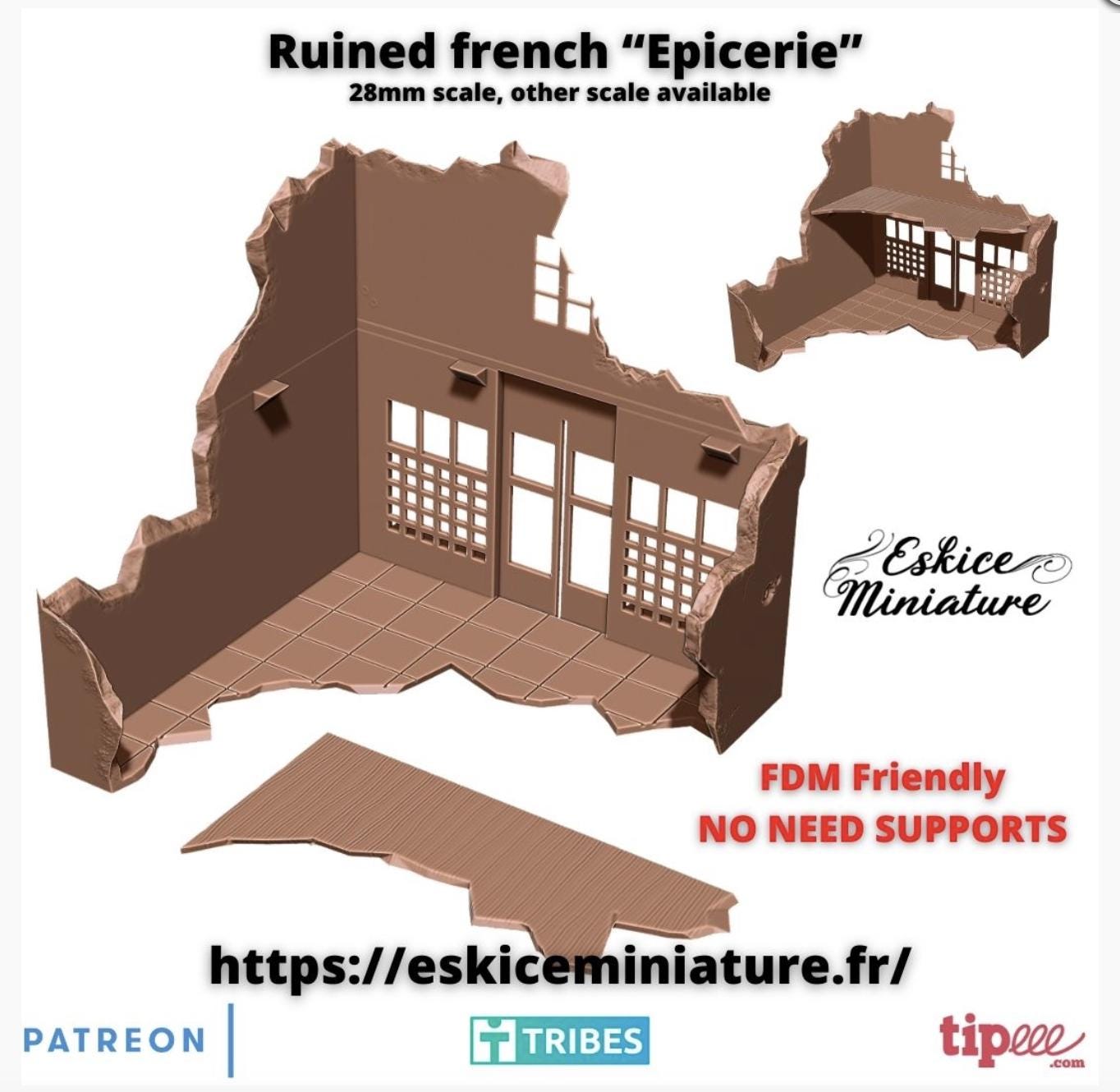 28mm World War 2 FDM Building-Ruined French Grocery Store- Perfect for European Theatre
