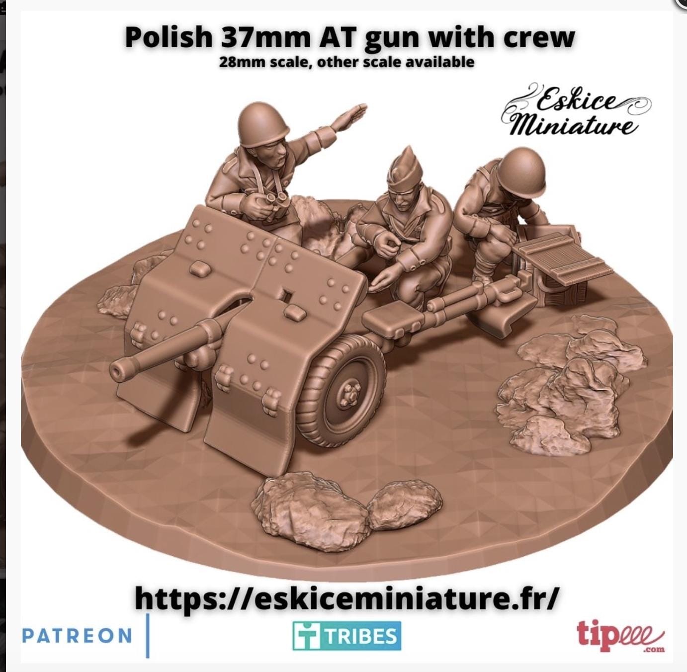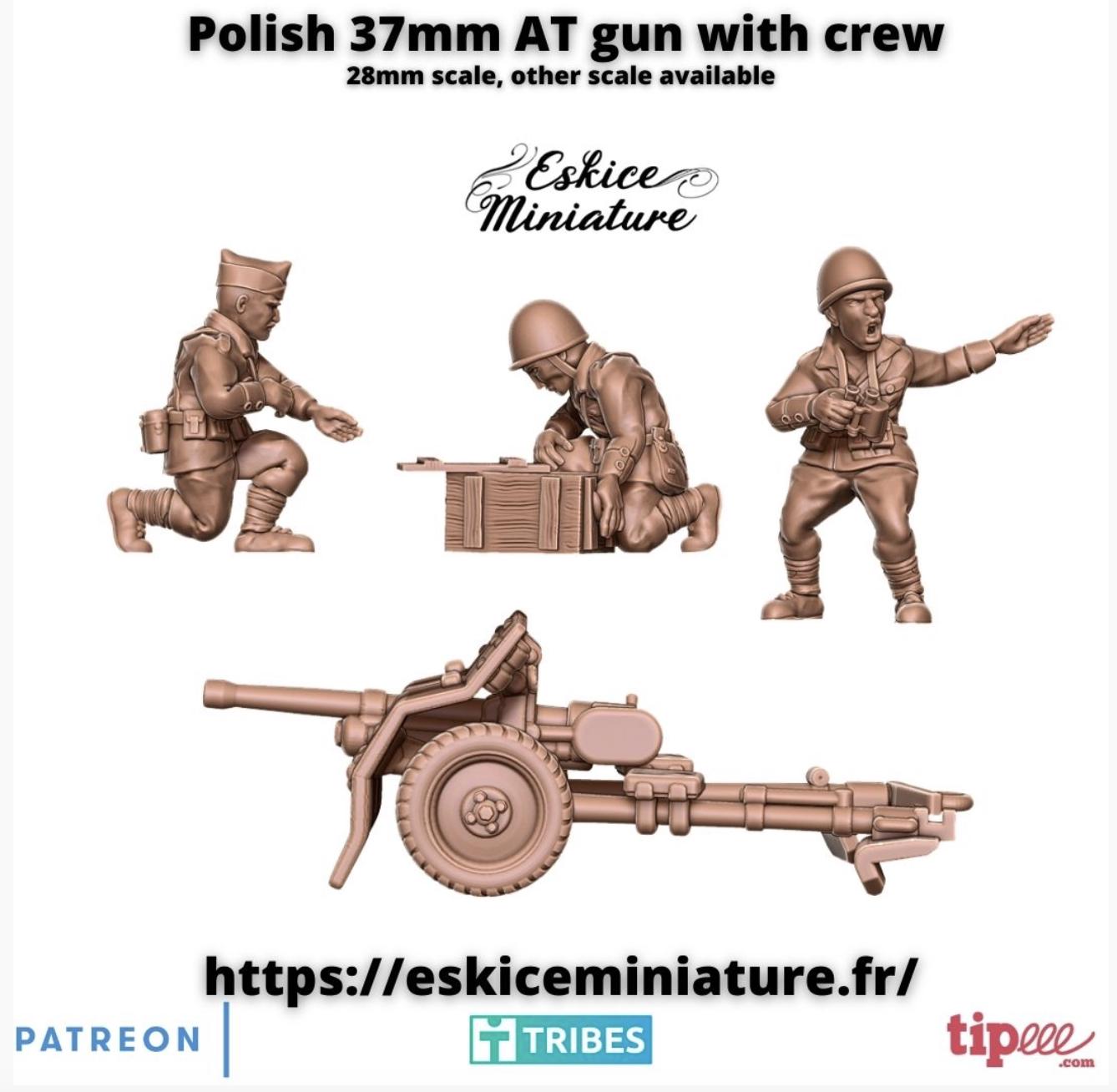 28mm WWII- Polish 37mm AT gun with crew - 28mm
