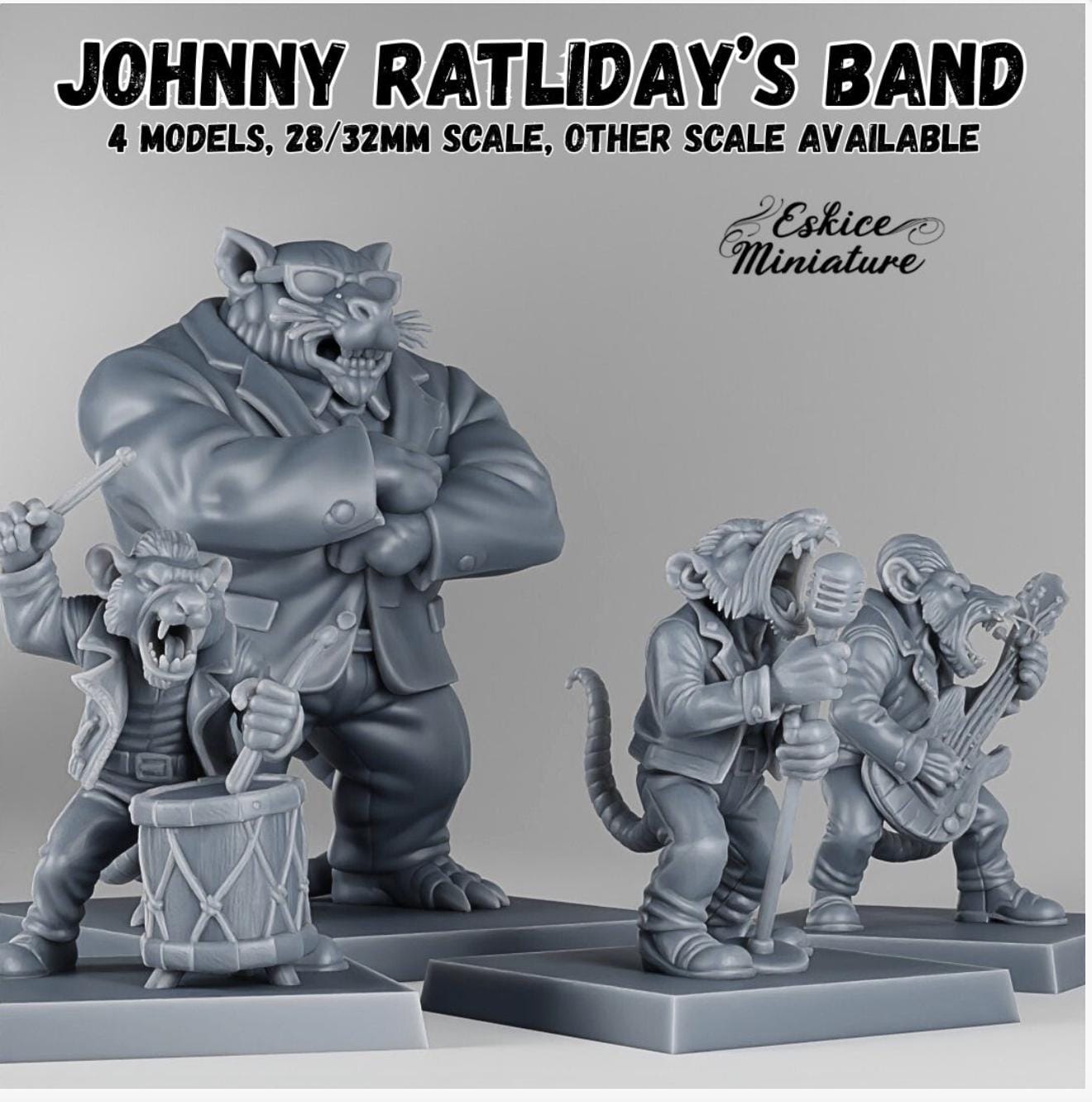 Resin Printed Fantasy Models- Johnny Ratliday's band - 28/32mm