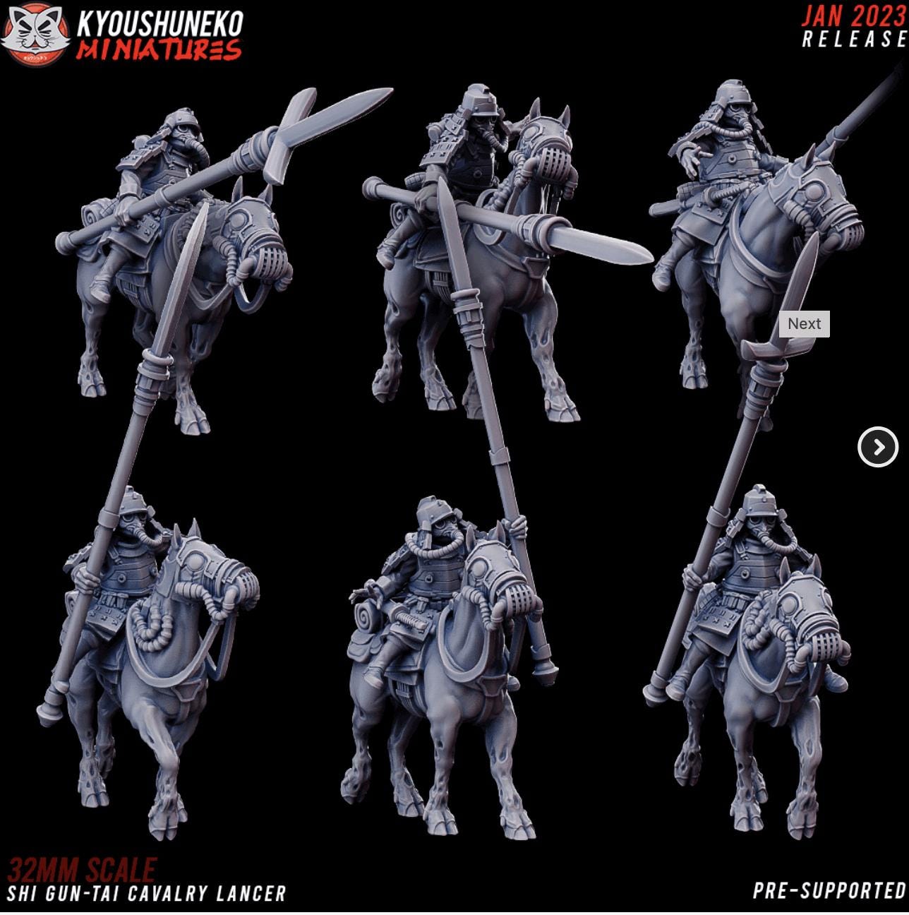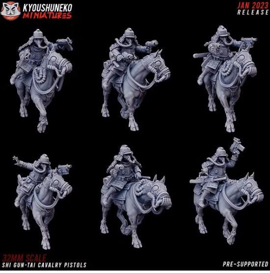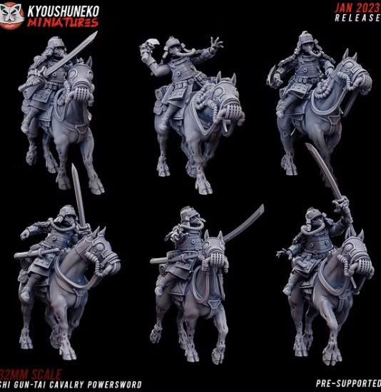 28mm Resin Printed Post-Modern Warfare - Weird War Shi Gun-Tai Cavalry- 6 Models