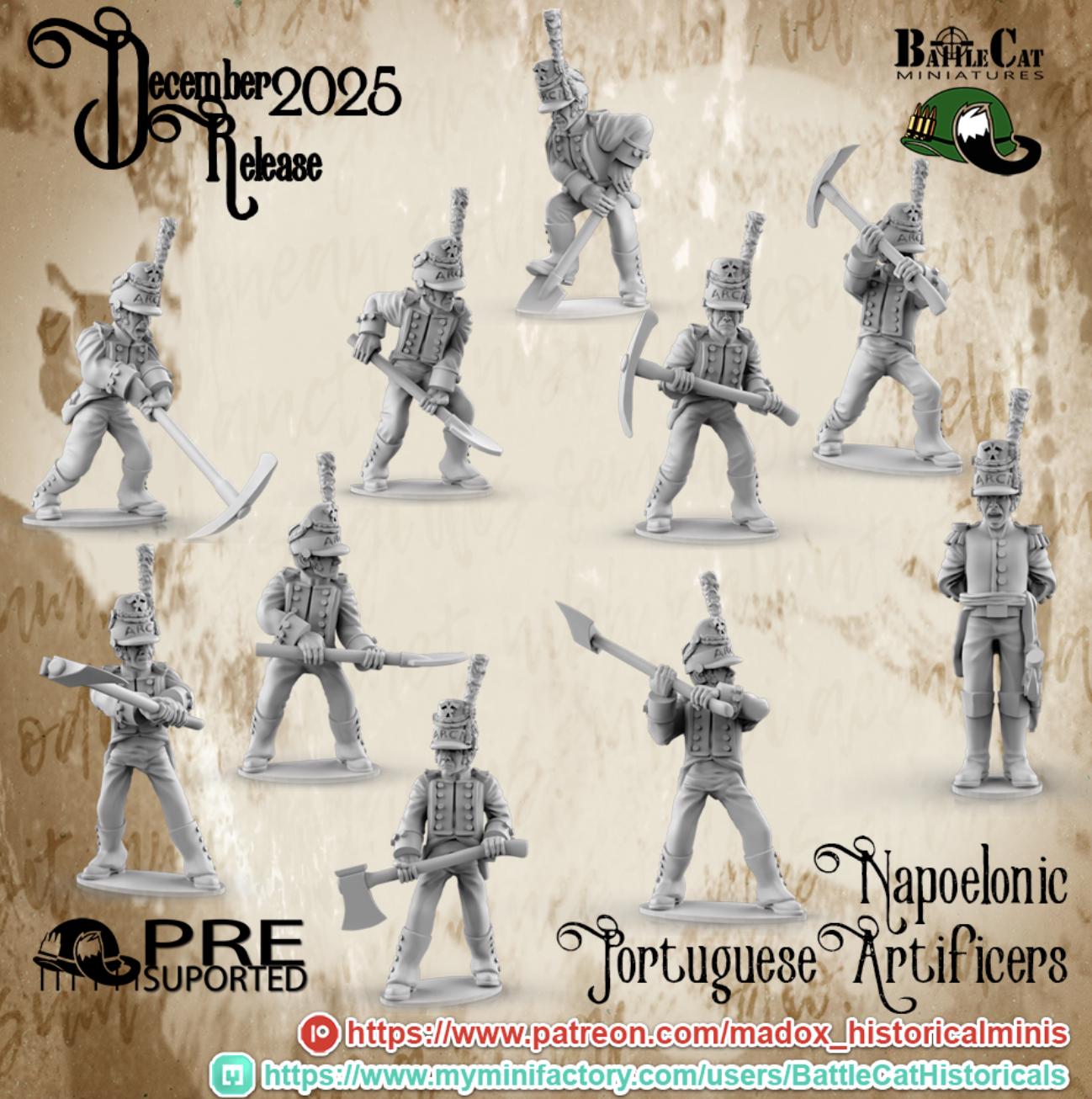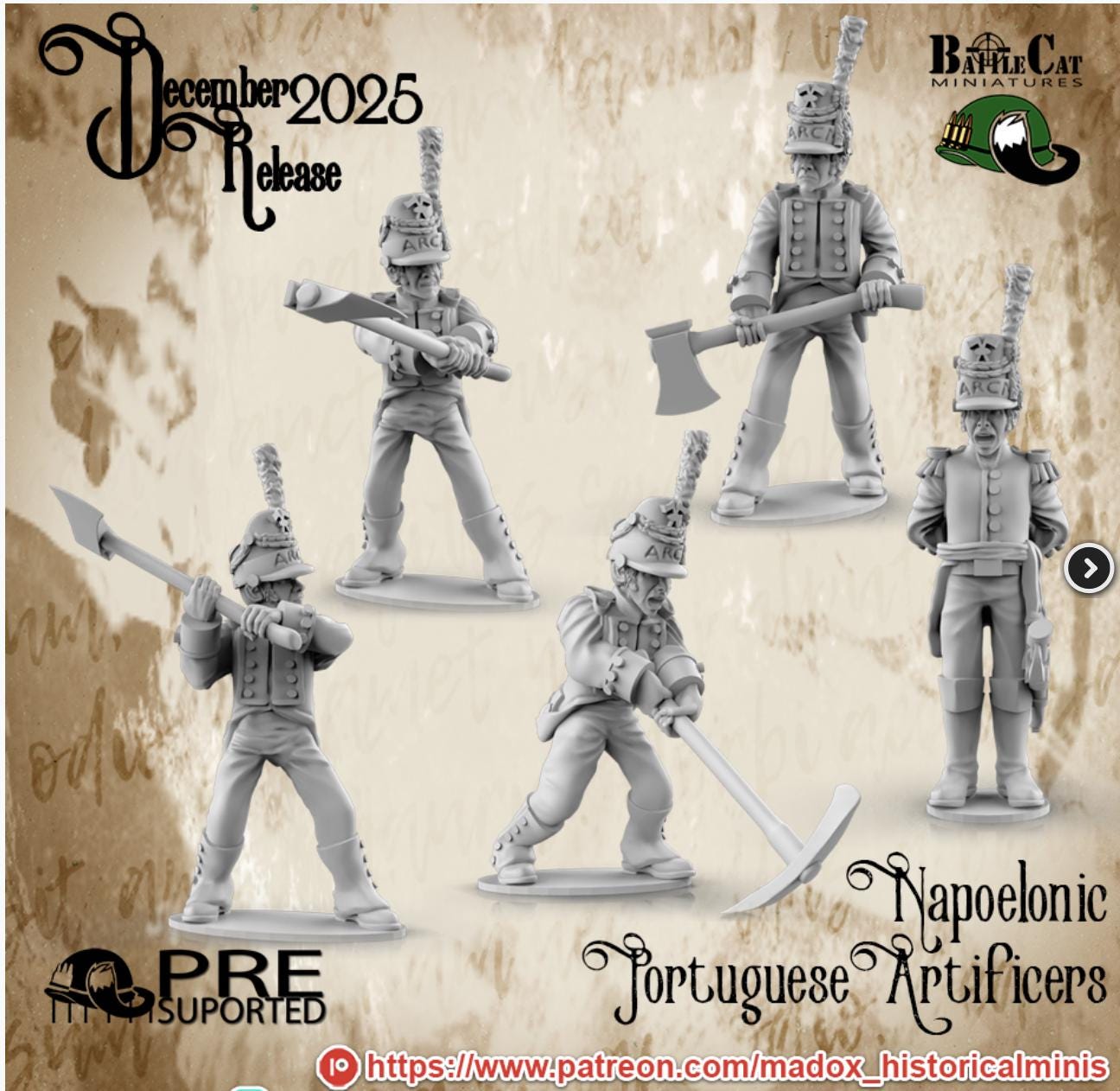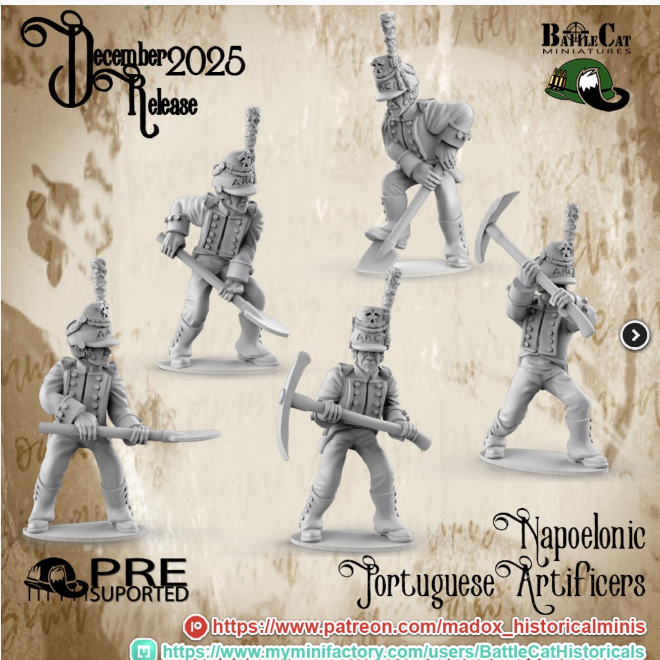 28mm Historical Gaming- Resin Printed Figures- Napoleonic Portuguese Artificers- Squad of 15