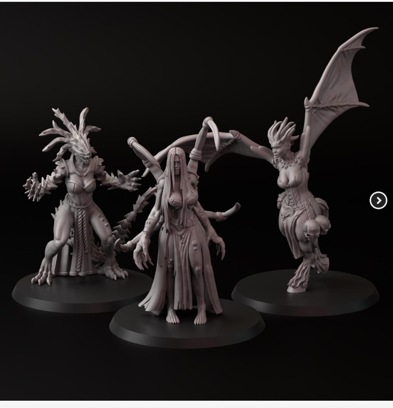 Resin Printed Miniatures- Mutant Girls- 3 Pack- 32mm models