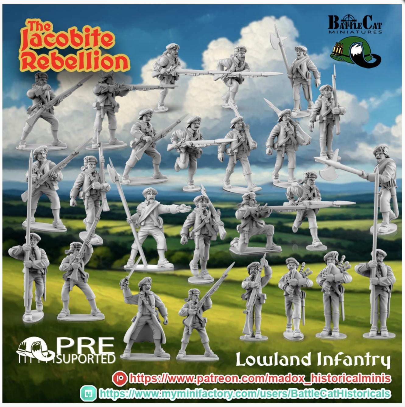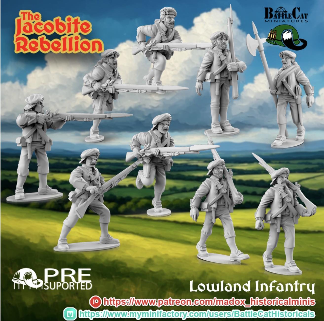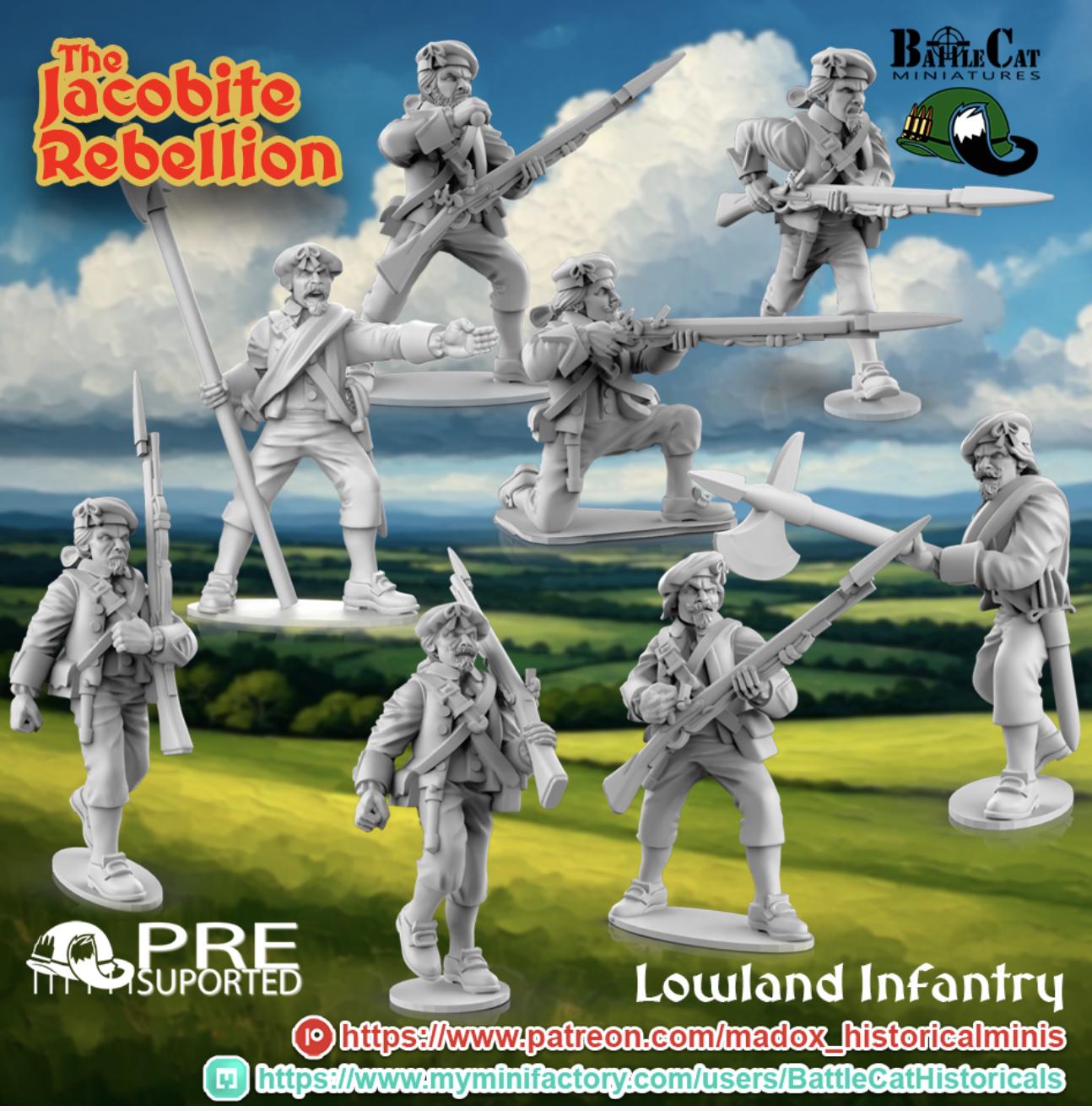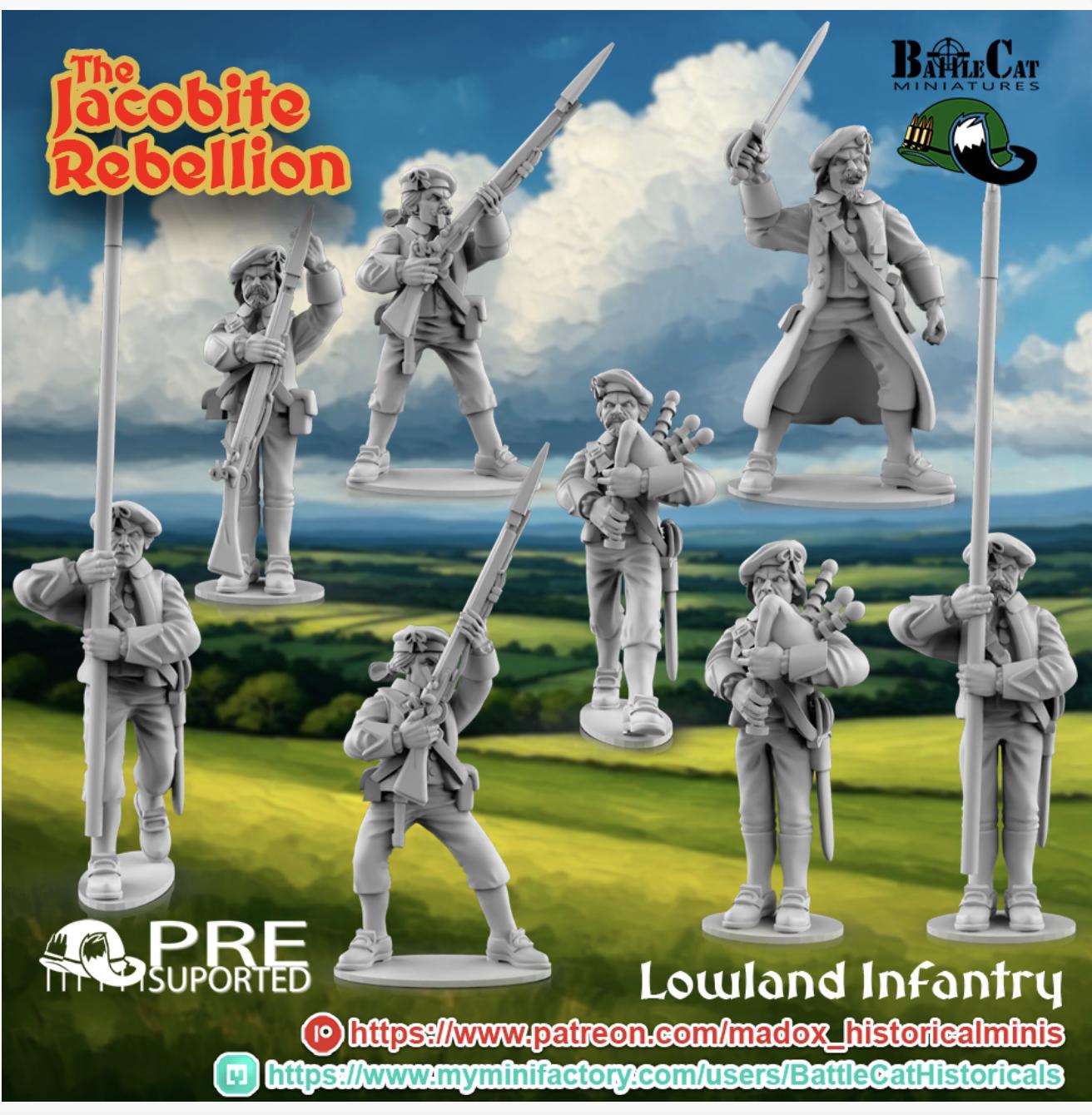 28mm Historical Gaming- Resin Printed Figures- 1745 Jacobite Lowland Infantry (Squad of 16 including command)