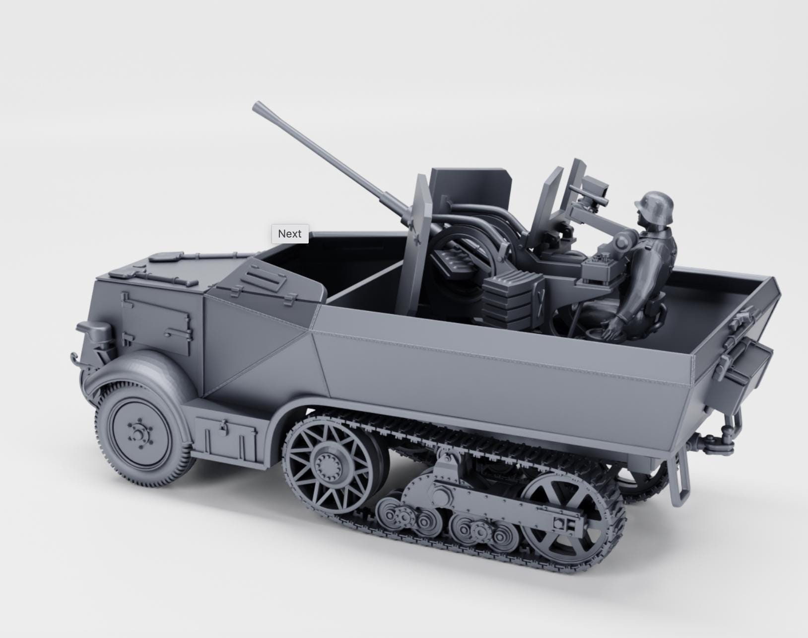 28mm World War 2-Resin Printed Half-track Unic U304(f) with 2cm Flak (late)+1 shooter (Germany+France, WW2)
