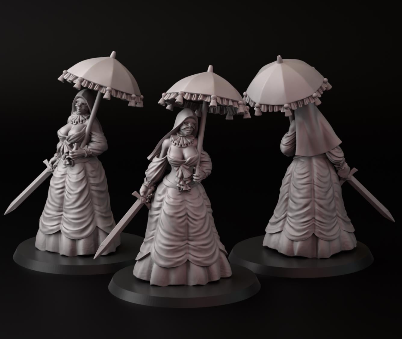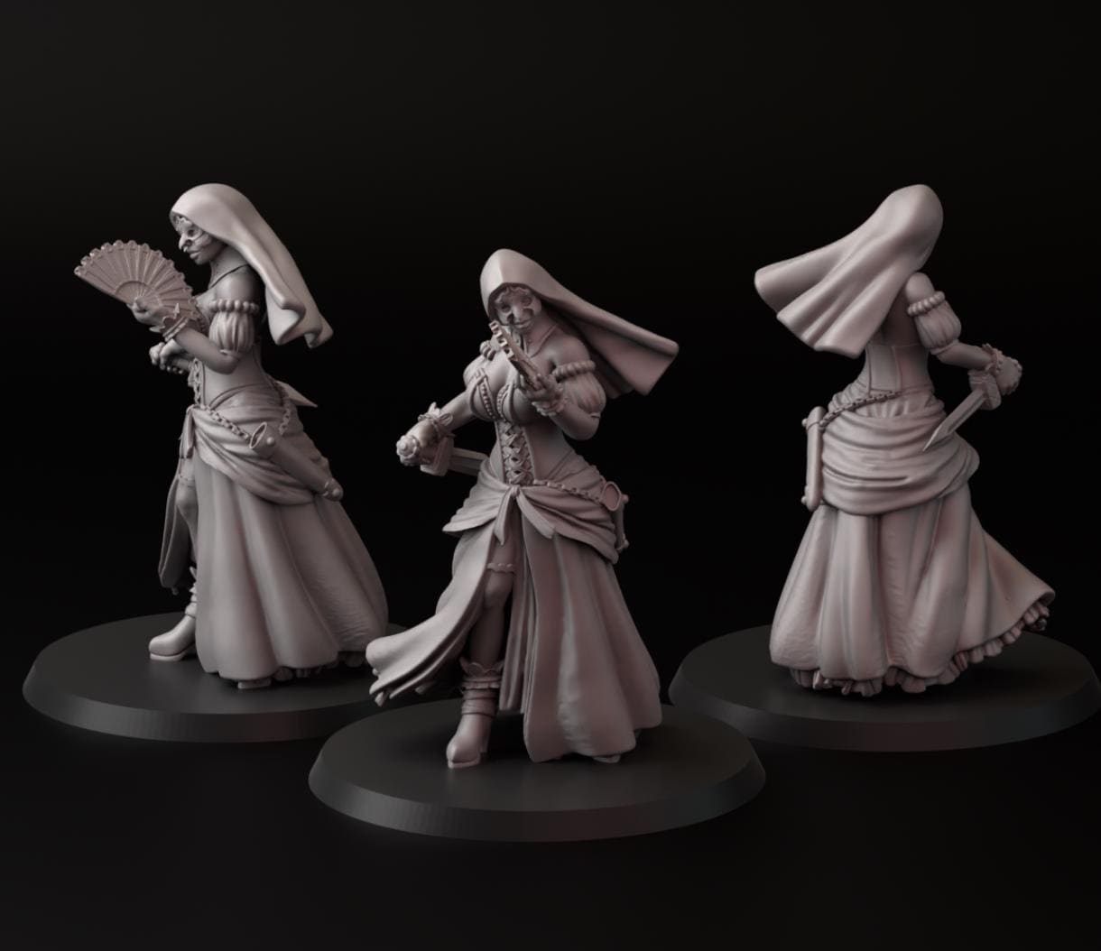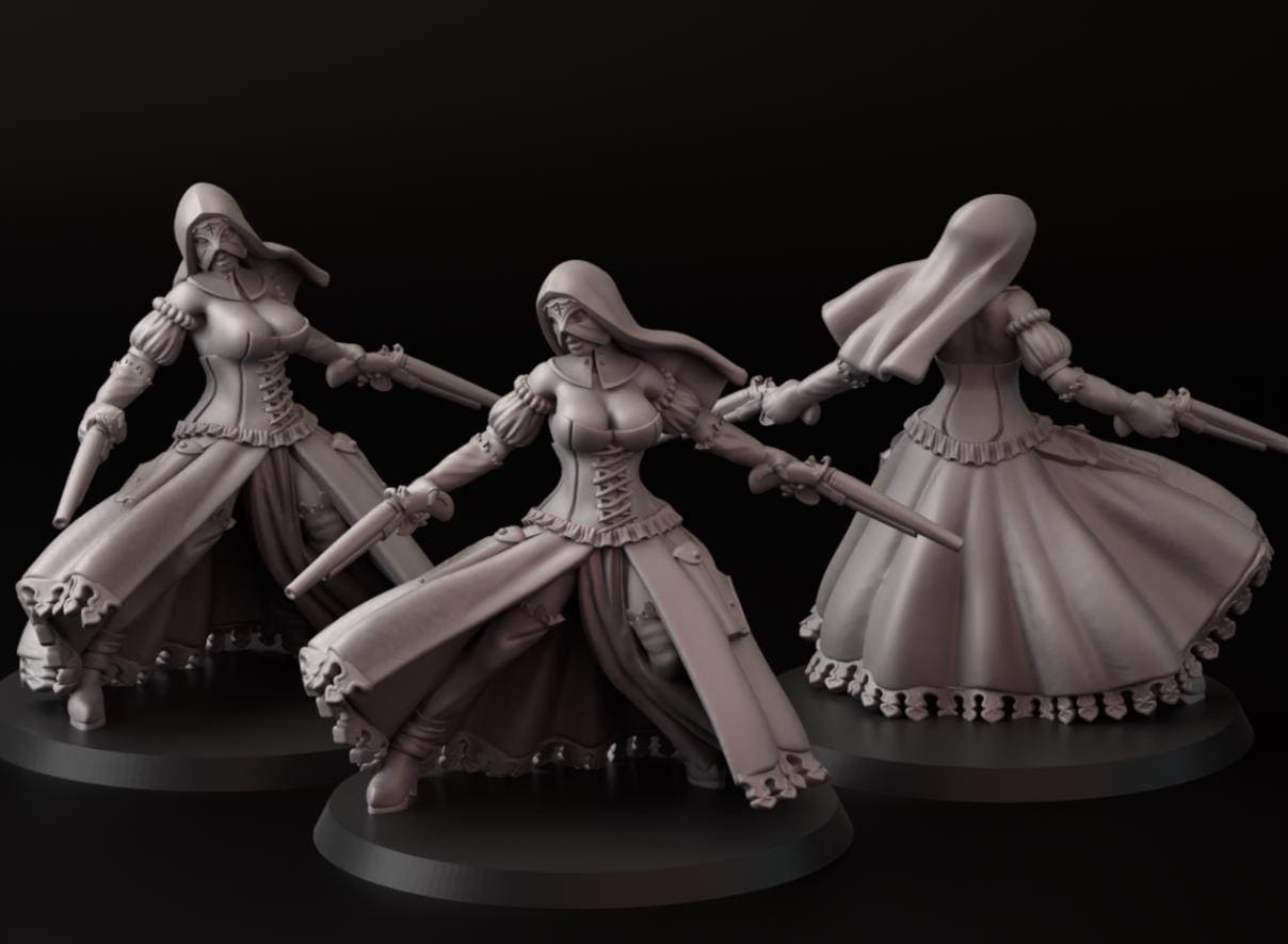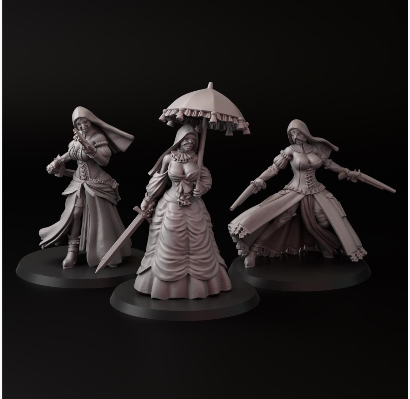 Resin Printed Miniatures- Carnival Nuns- 3 Pack- 32mm models