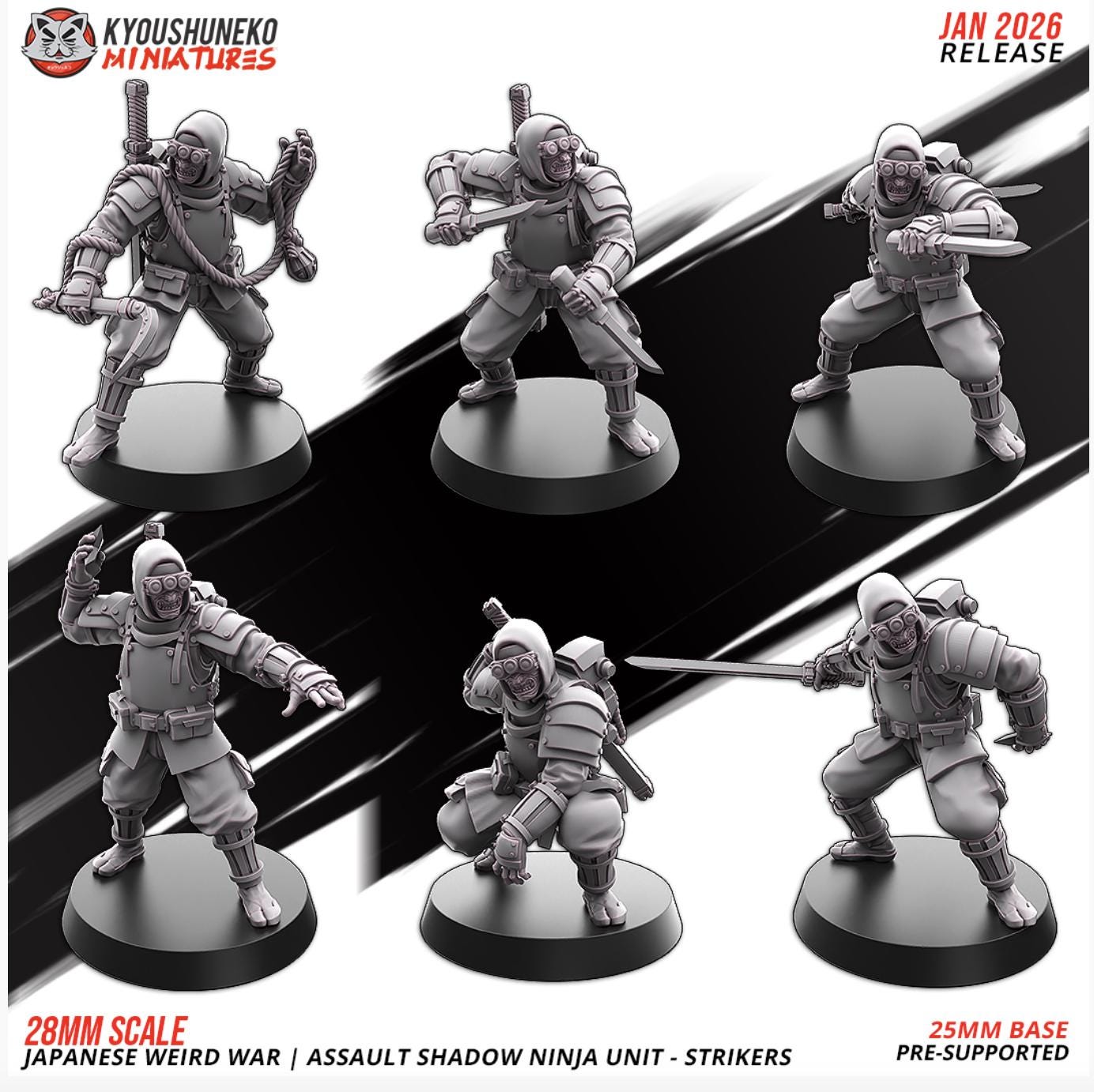 28mm Resin Printed Second World War- Weird War- Assault Shadow Ninja Unit 19 Models
