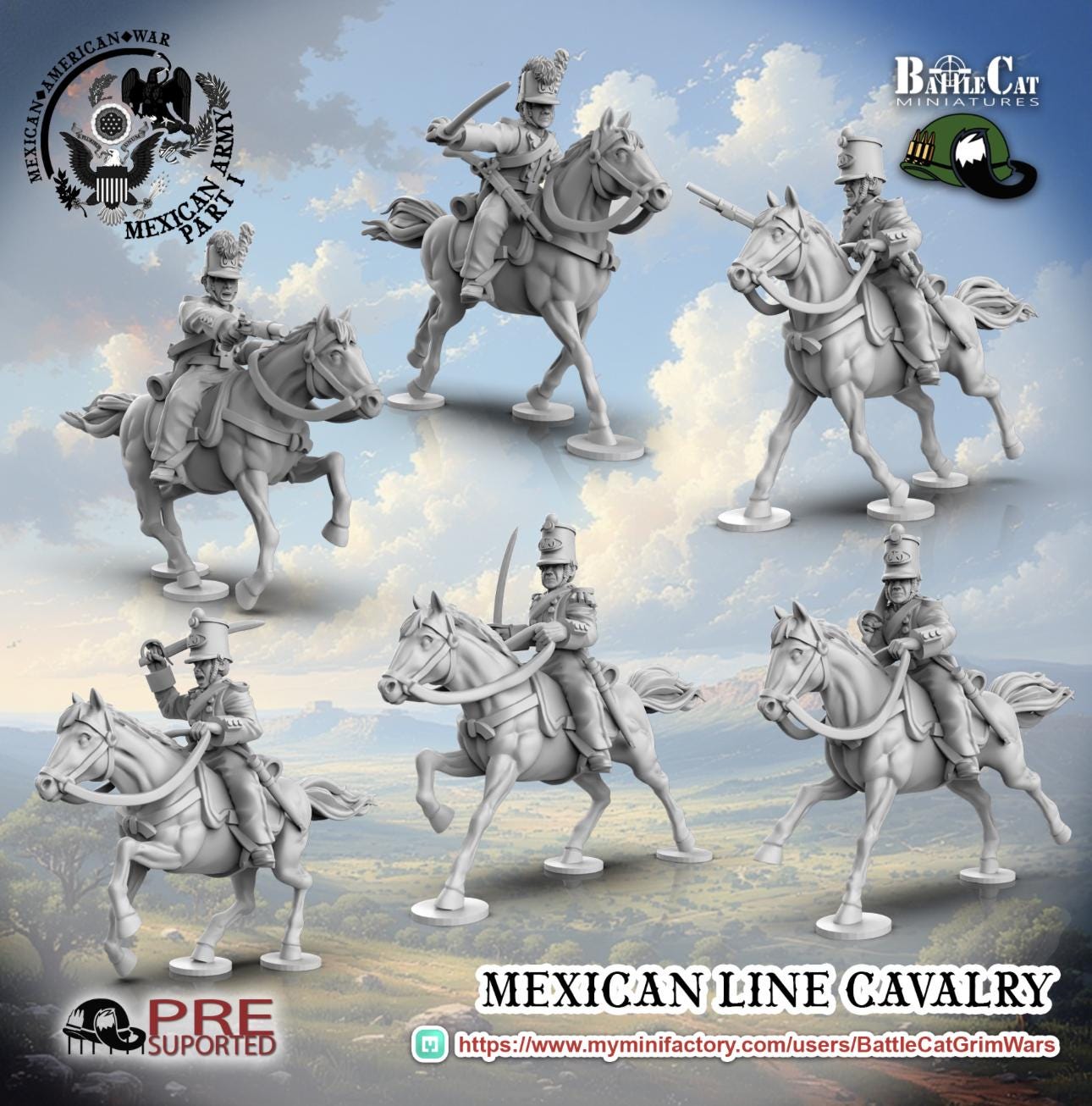 28mm Historical Gaming- Resin Printed Figures- 11846 Mexican Line Cavalry (Squad of 10 including command)