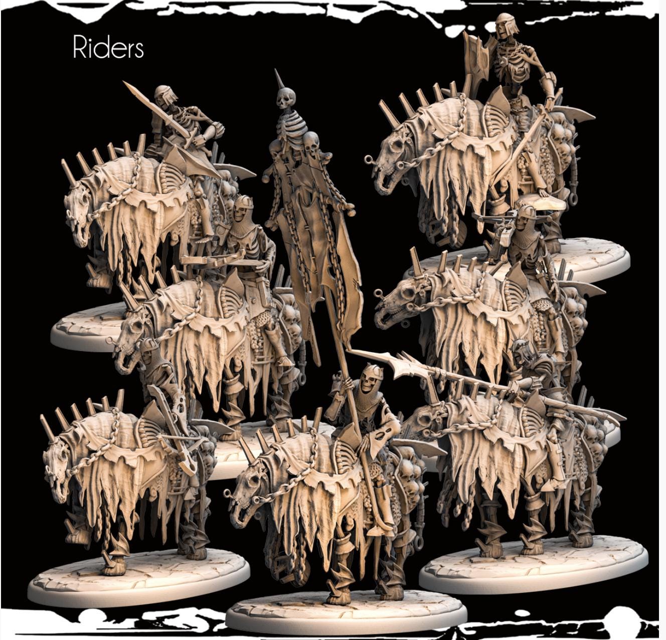 Resin Printed Fantasy- Army of Darkness- Skeleton Riders-28mm Historic