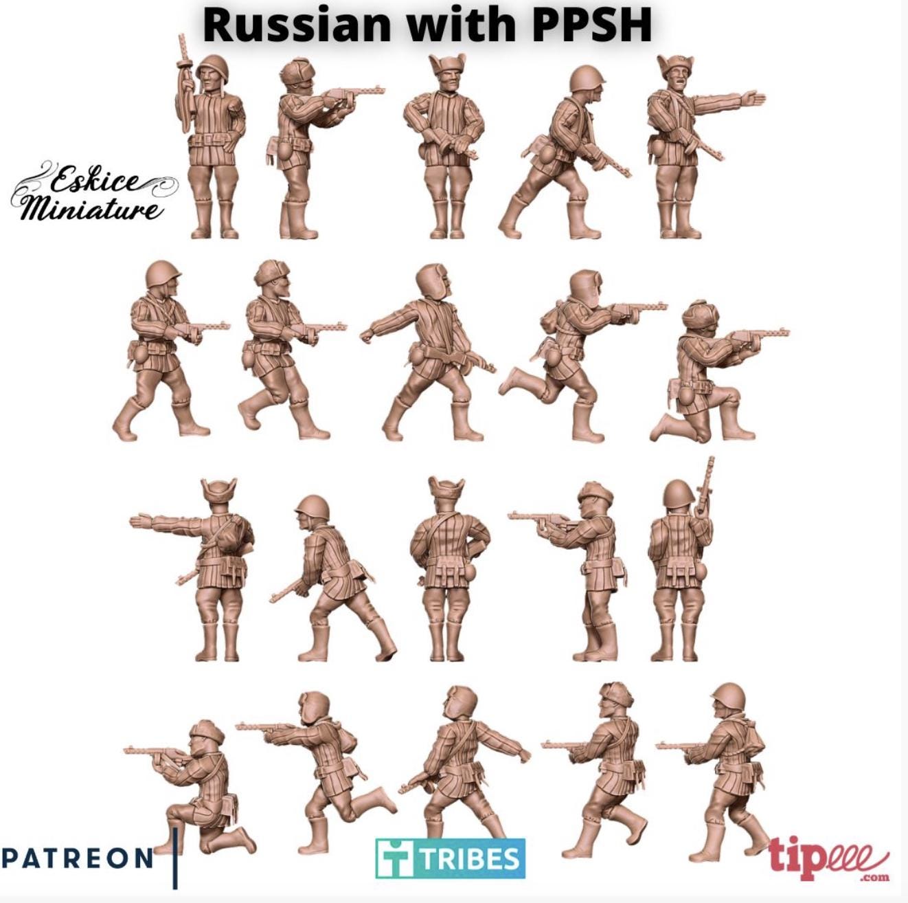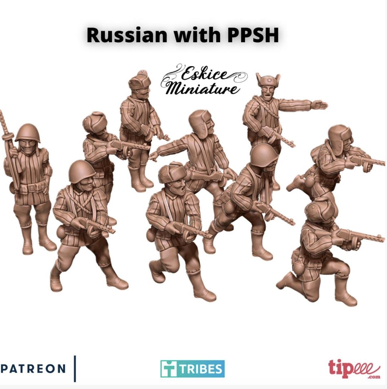 28mm WWII- Russian infantry with PPSH- 28mm -10 Models
