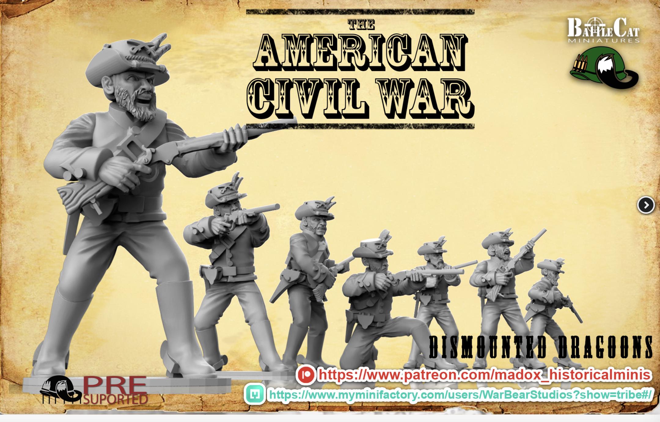 28mm American Civil Way Gaming- Resin Printed Figures- ACW Union Dismounted Dragoons (Squad of 20 Including Command)