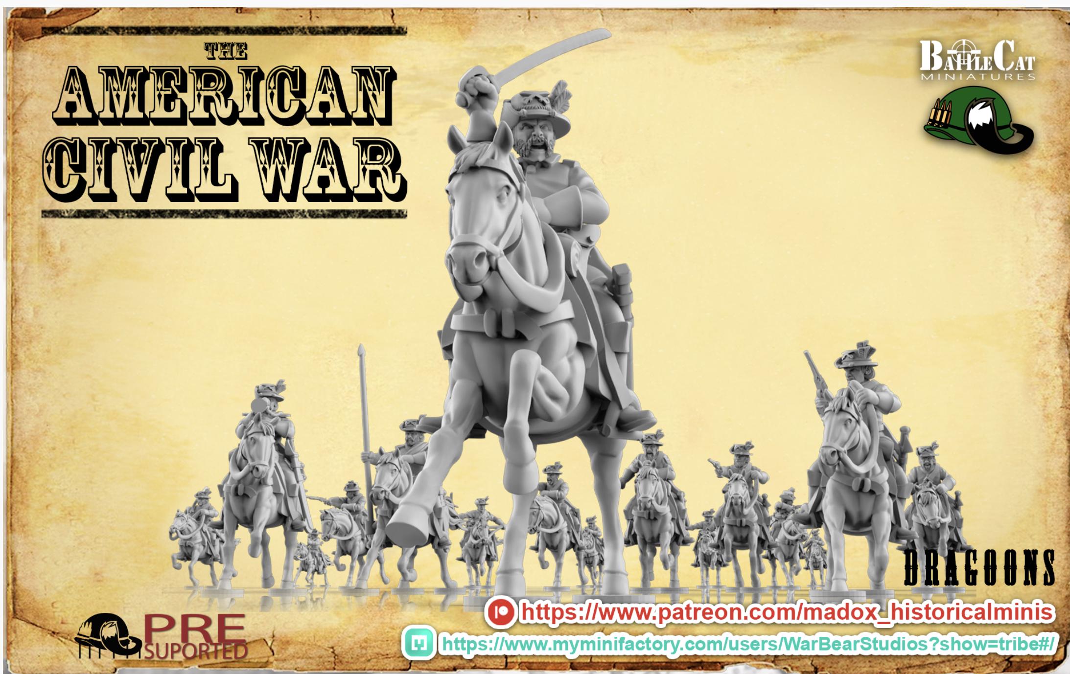 28mm American Civil Way Gaming- Resin Printed Figures- ACW Union Cavalry (Squad of 10 Including Command)