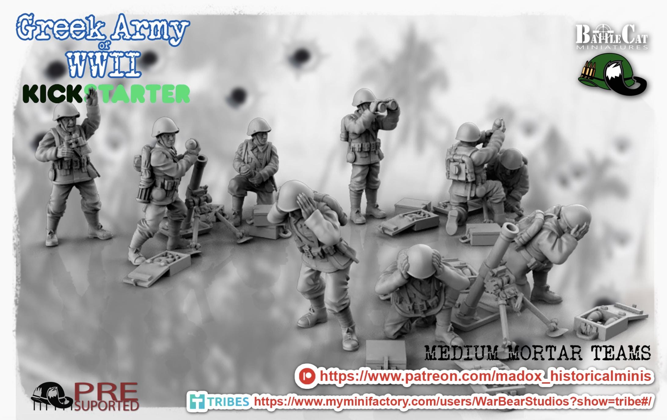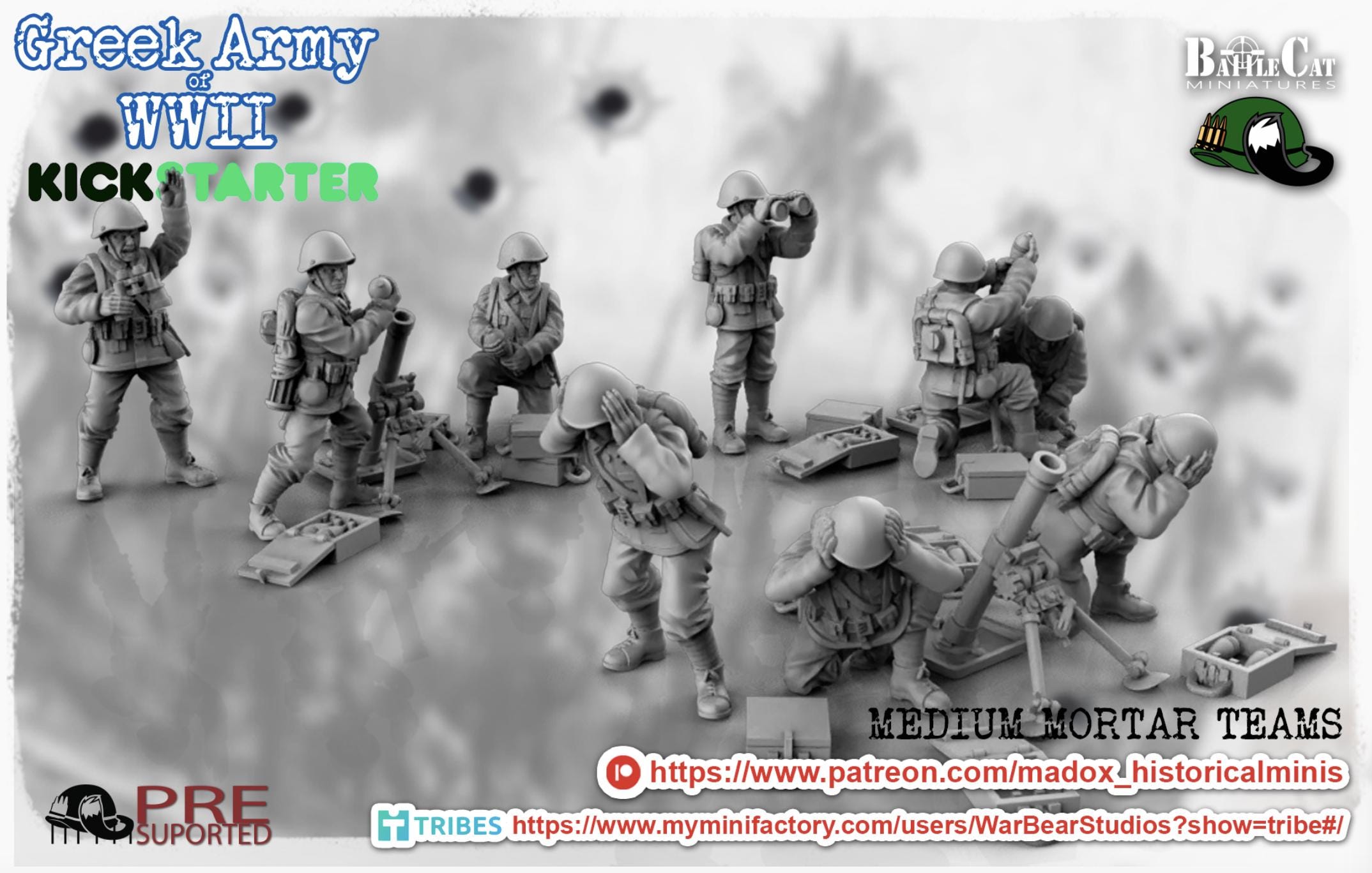28mm World War 2- Resin Printed WWII Greek Medium Mortar (3 Pack)