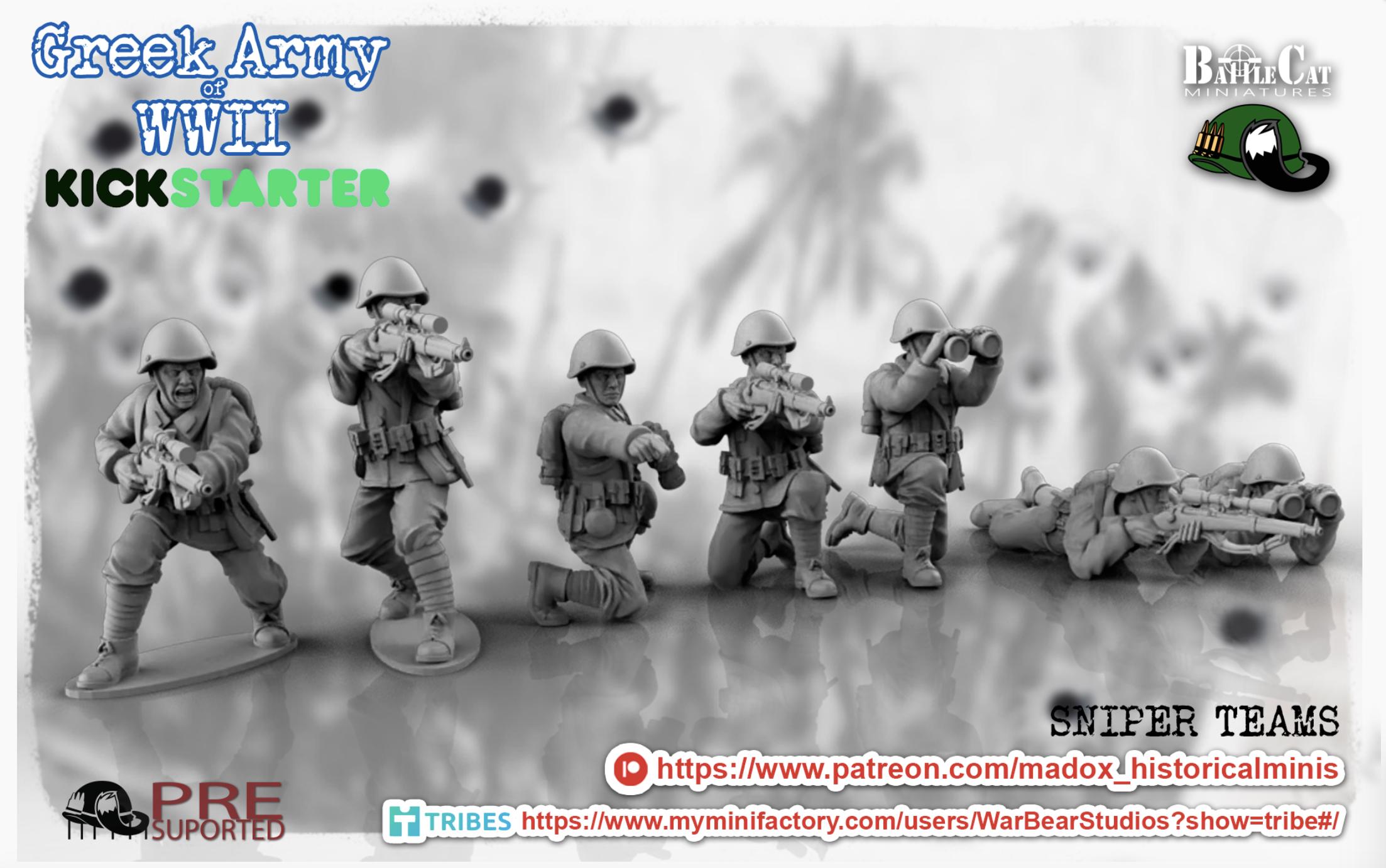 28mm World War 2- Resin Printed WWII Greek Sniper Teams (3 Pack)