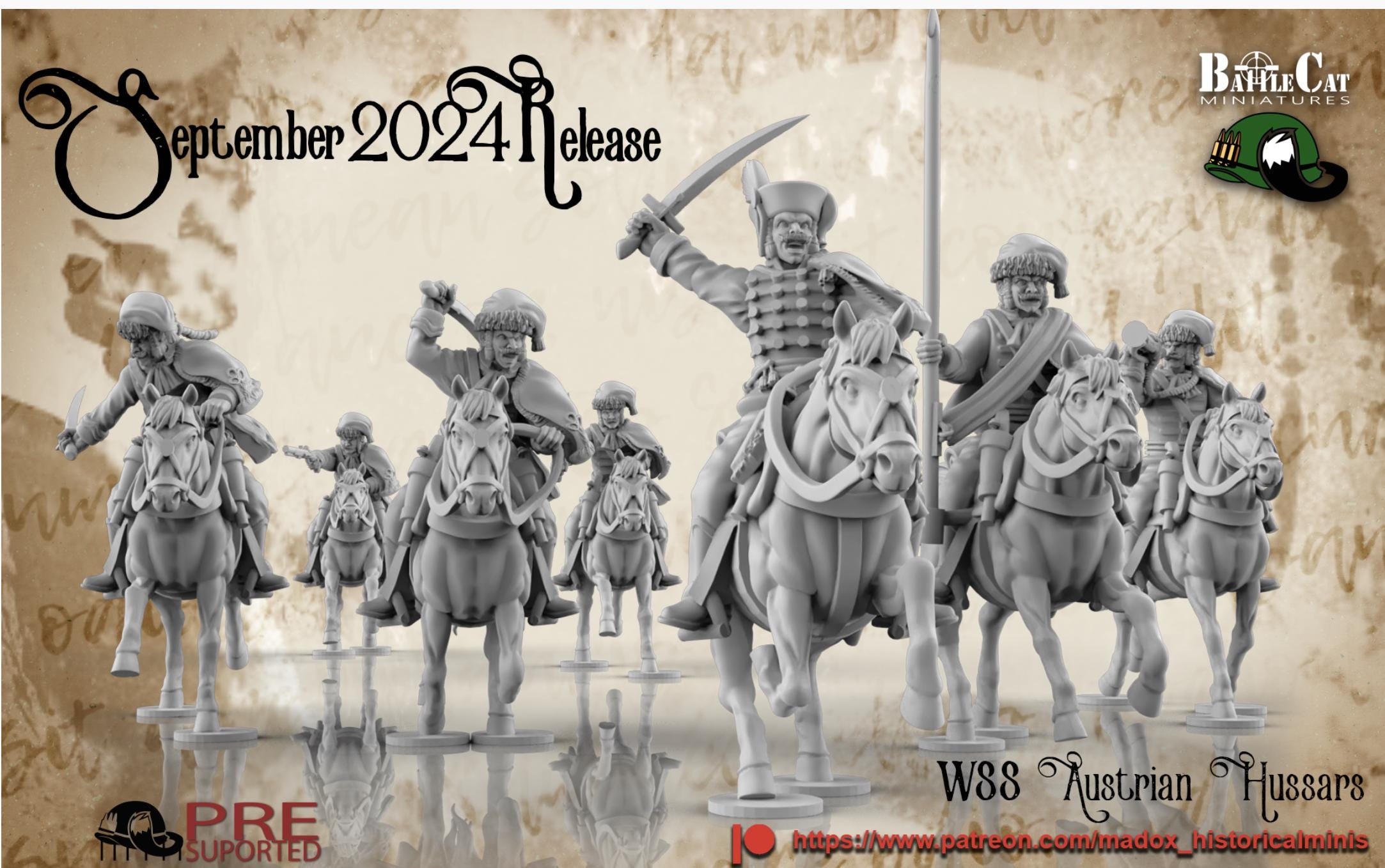 28mm Historical Gaming- Resin Printed Figures- WSS Austrian Hussars (Squad of 10 Including Command)