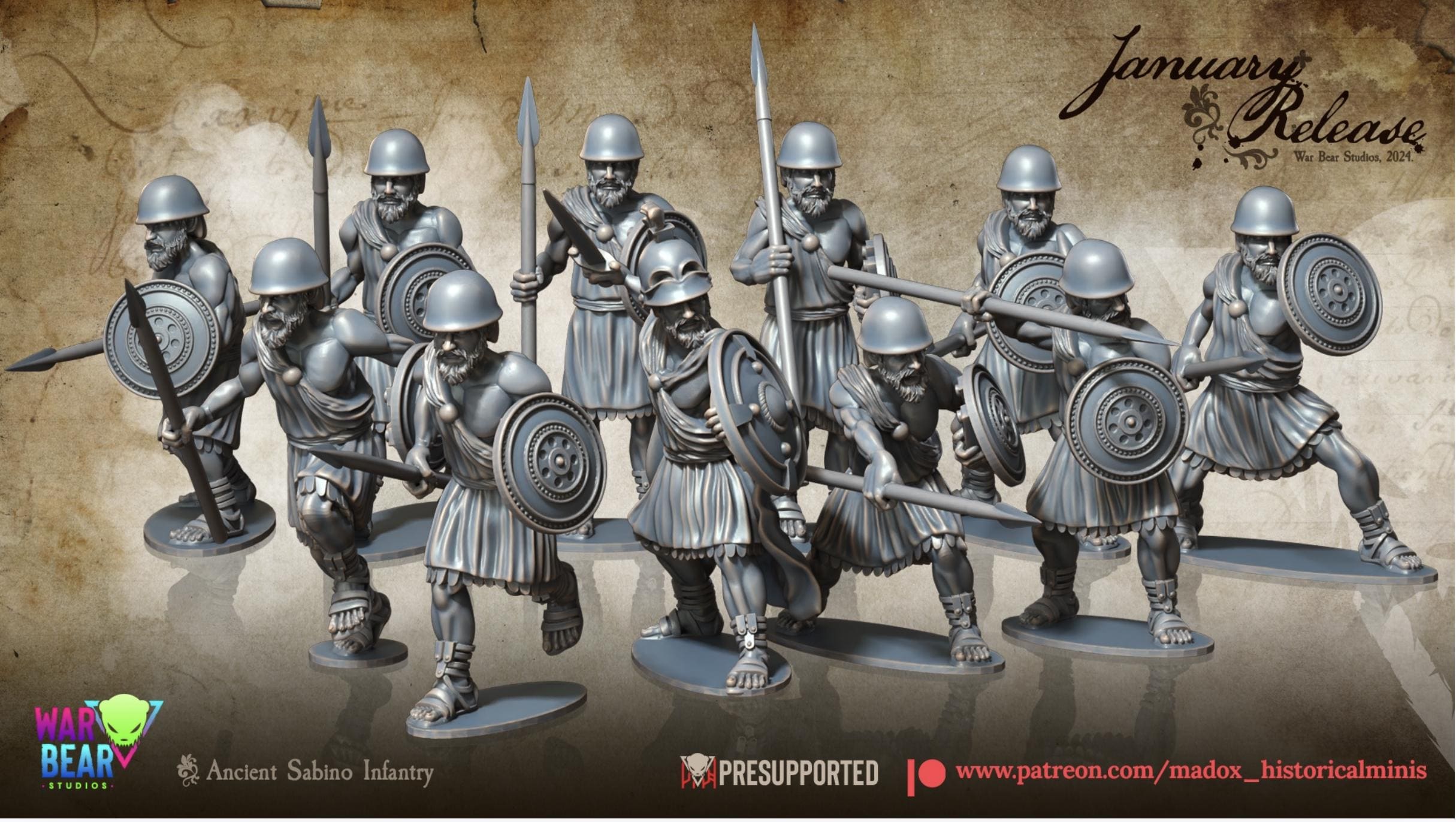 28mm Historical Gaming- Resin Printed Figures- Ancient Rome Sabino Infantry with Tito Tacio (Squad of 20 Including Command)