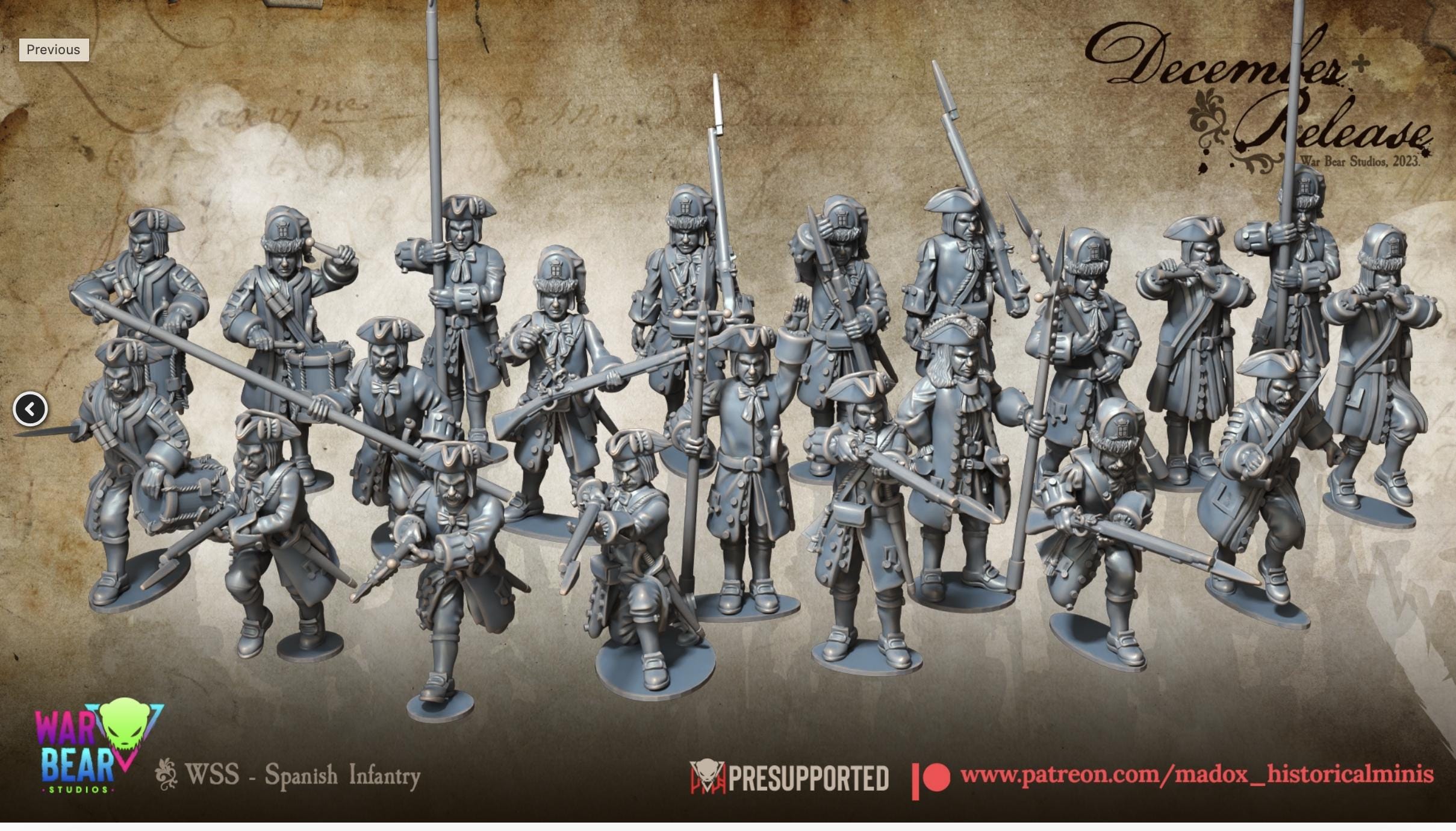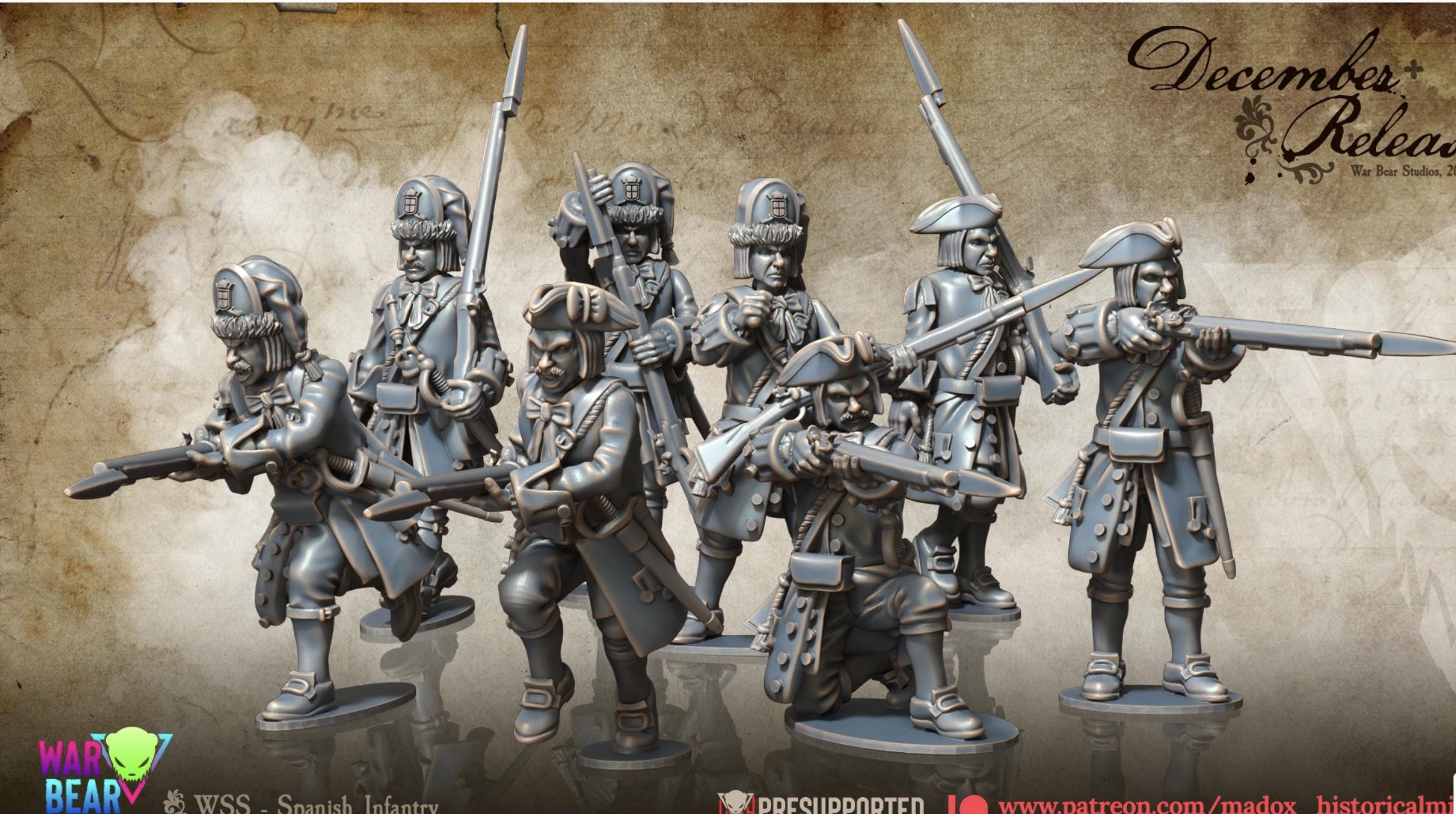 28mm Historical Gaming- Resin Printed Figures-WSS Spanish Infantry (Squad of 20 with Command)