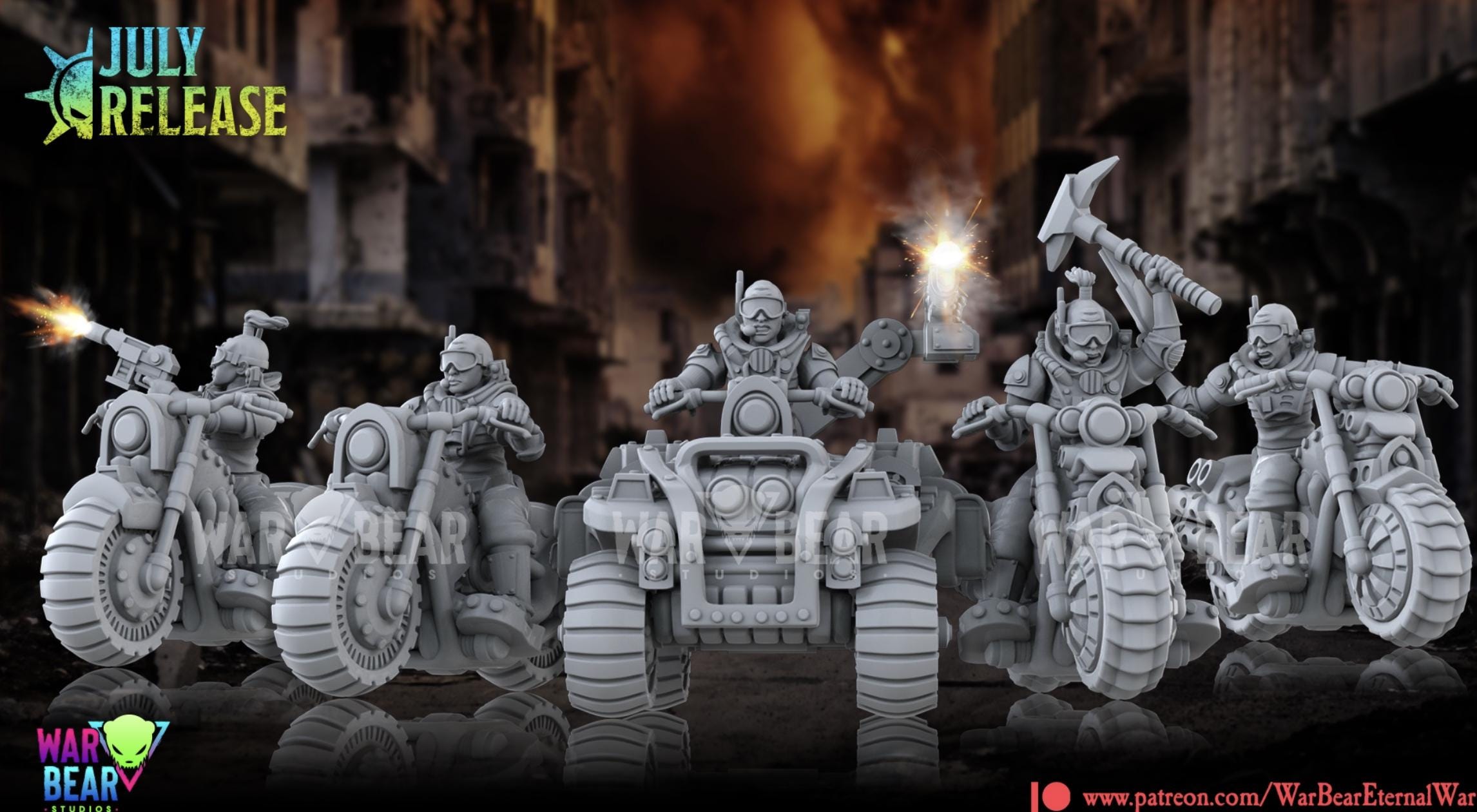 28mm Resin Printed Post-Modern Warfare -Alien cult Reaper Bikers (Squad of 5)