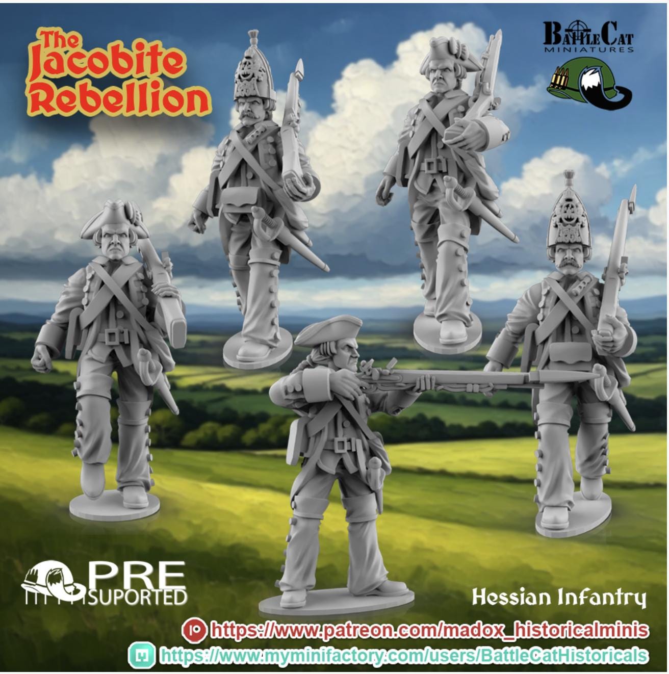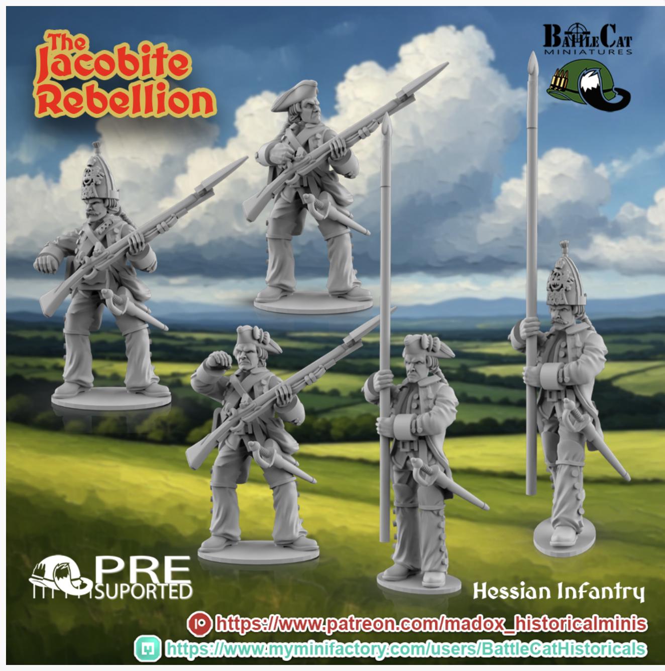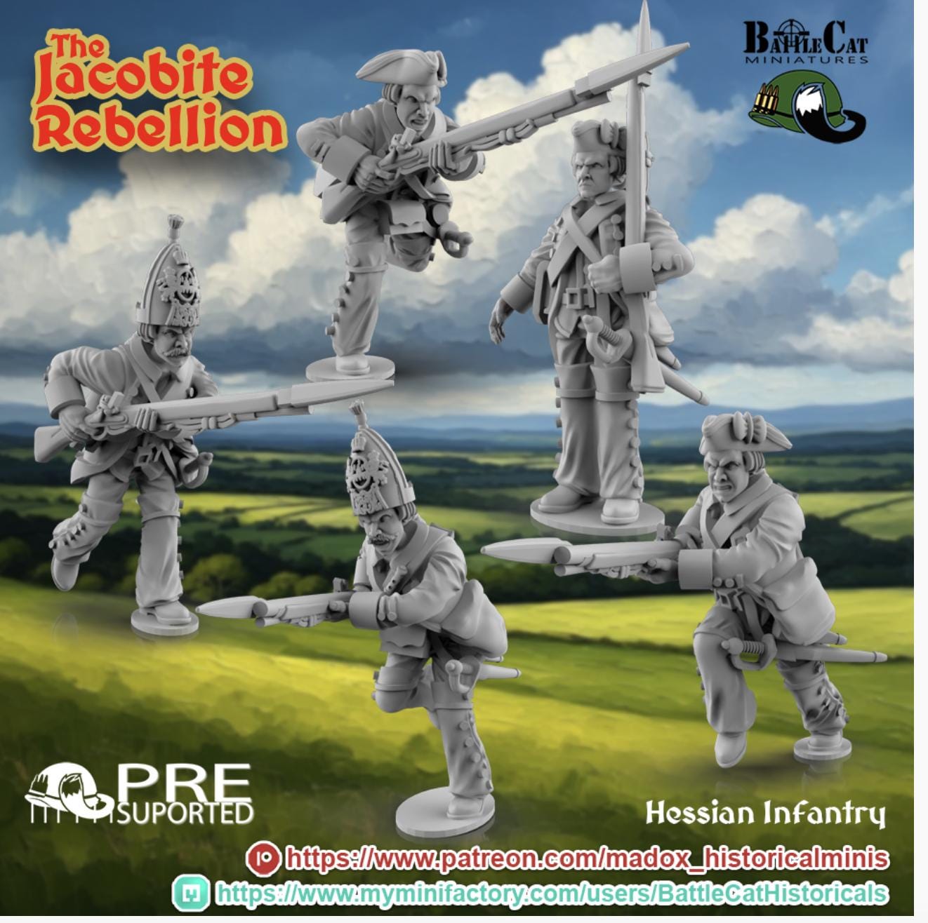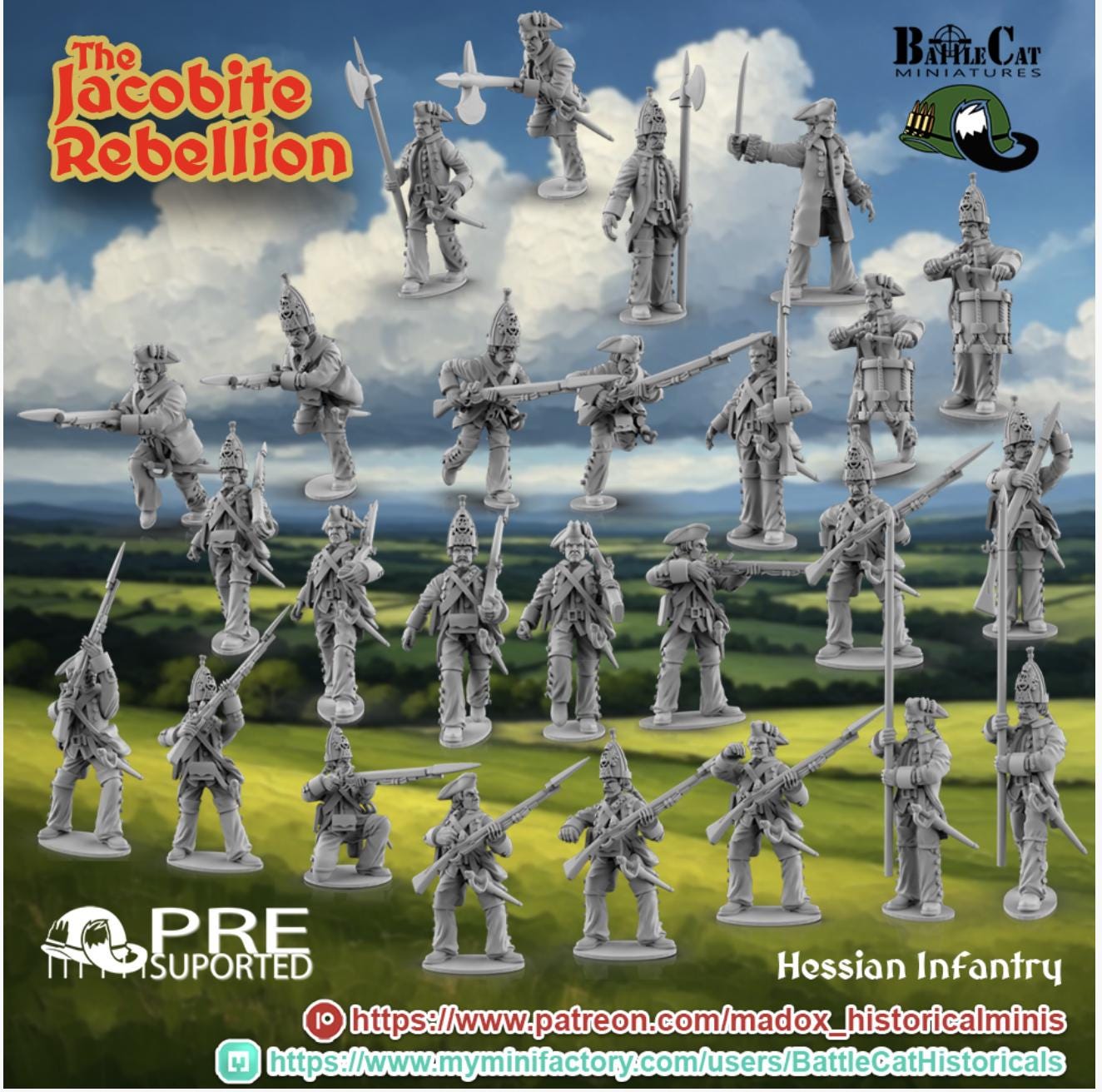 28mm Historical Gaming- Resin Printed Figures- 1745 Hessian Infantry (squad of 20 Including Command)