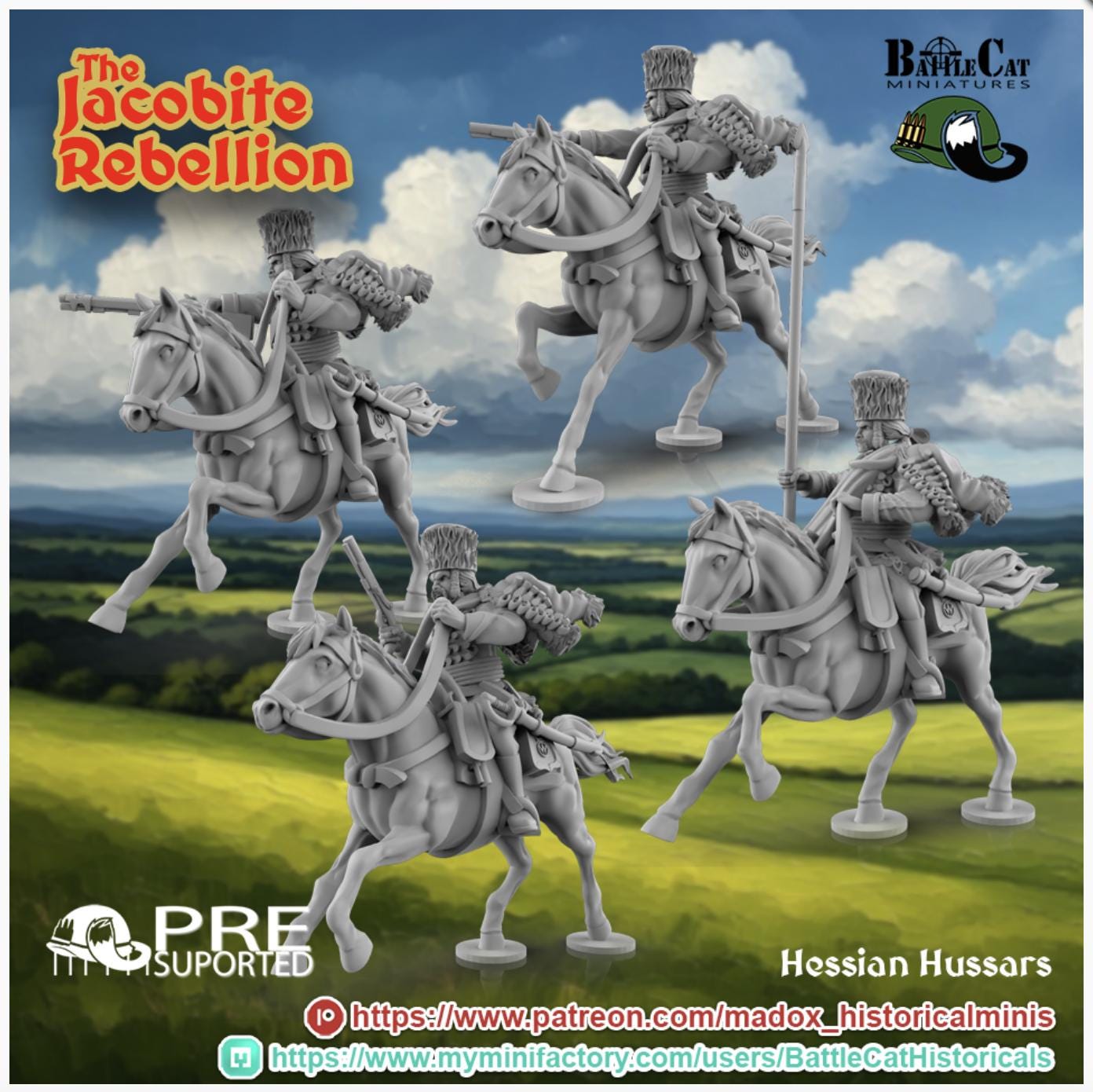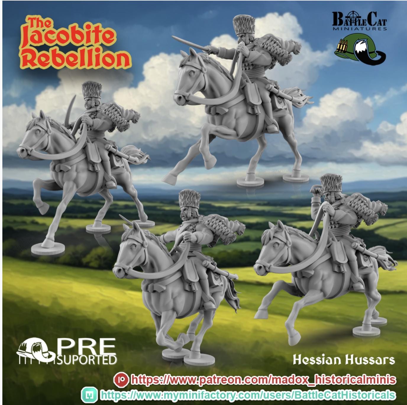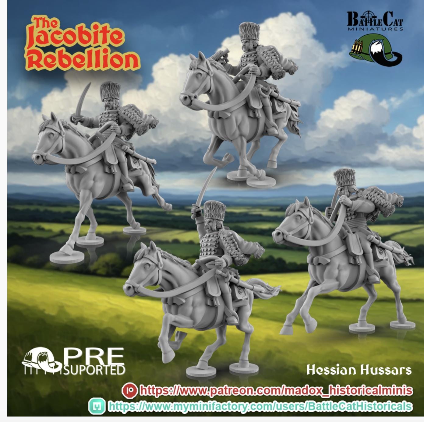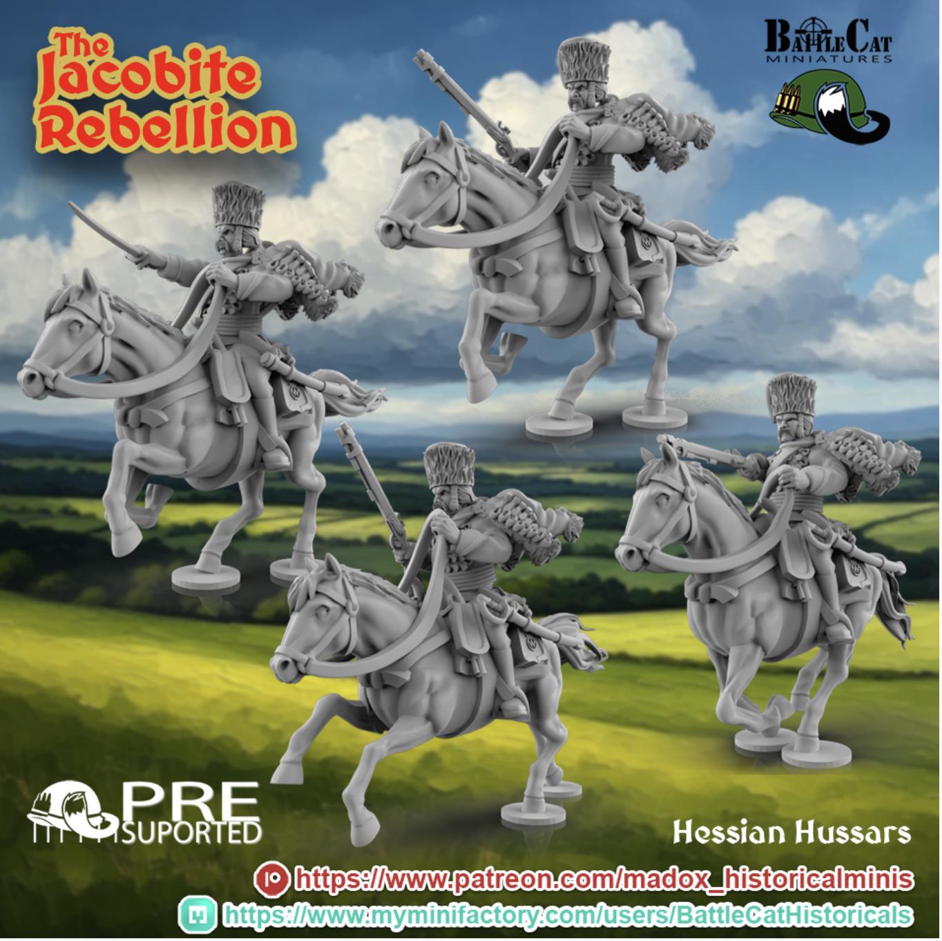 28mm Historical Gaming- Resin Printed Figures-1745 Hessian Hussars (Squad of 8 including command)