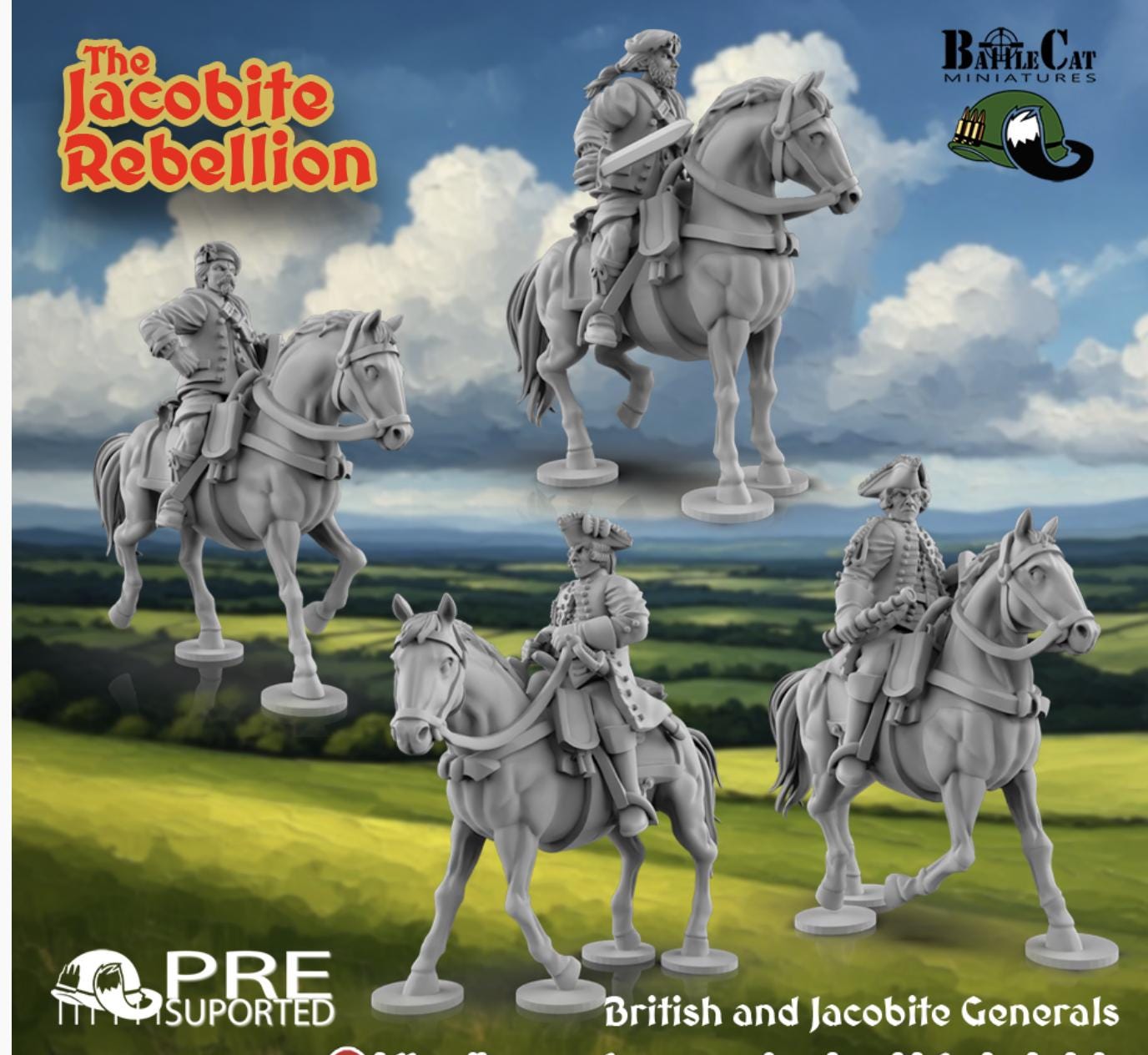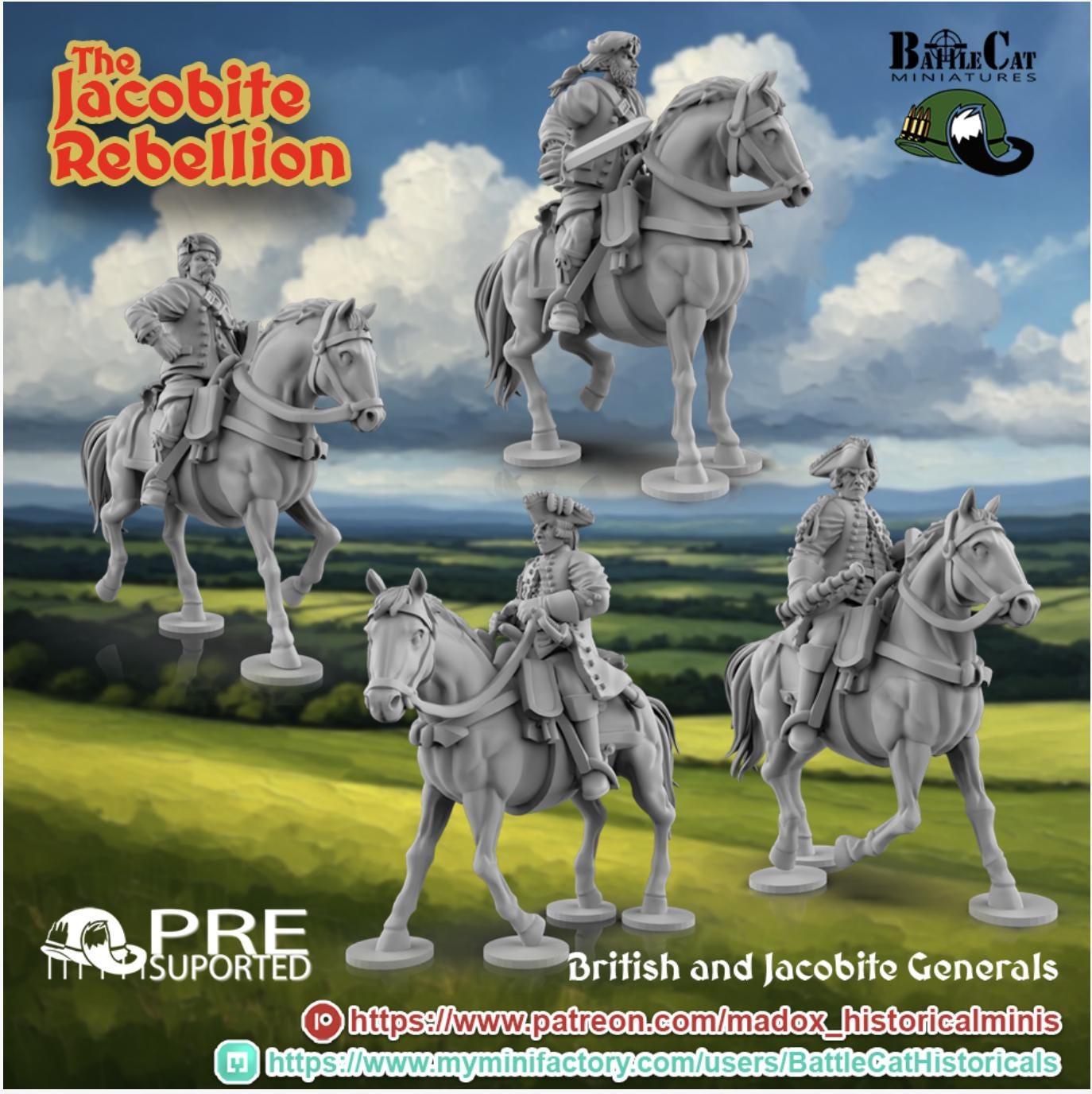 28mm Historical Gaming- Resin Printed Figures-1745 British and Jacobite Generals (Squad of 4)