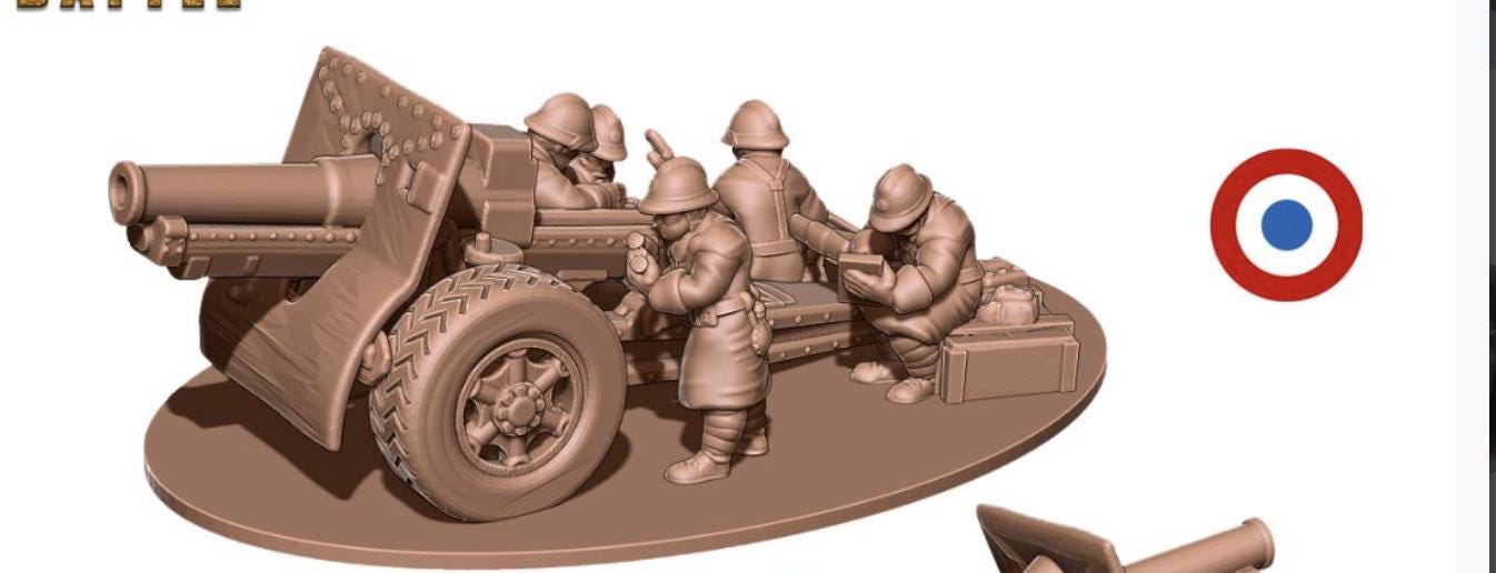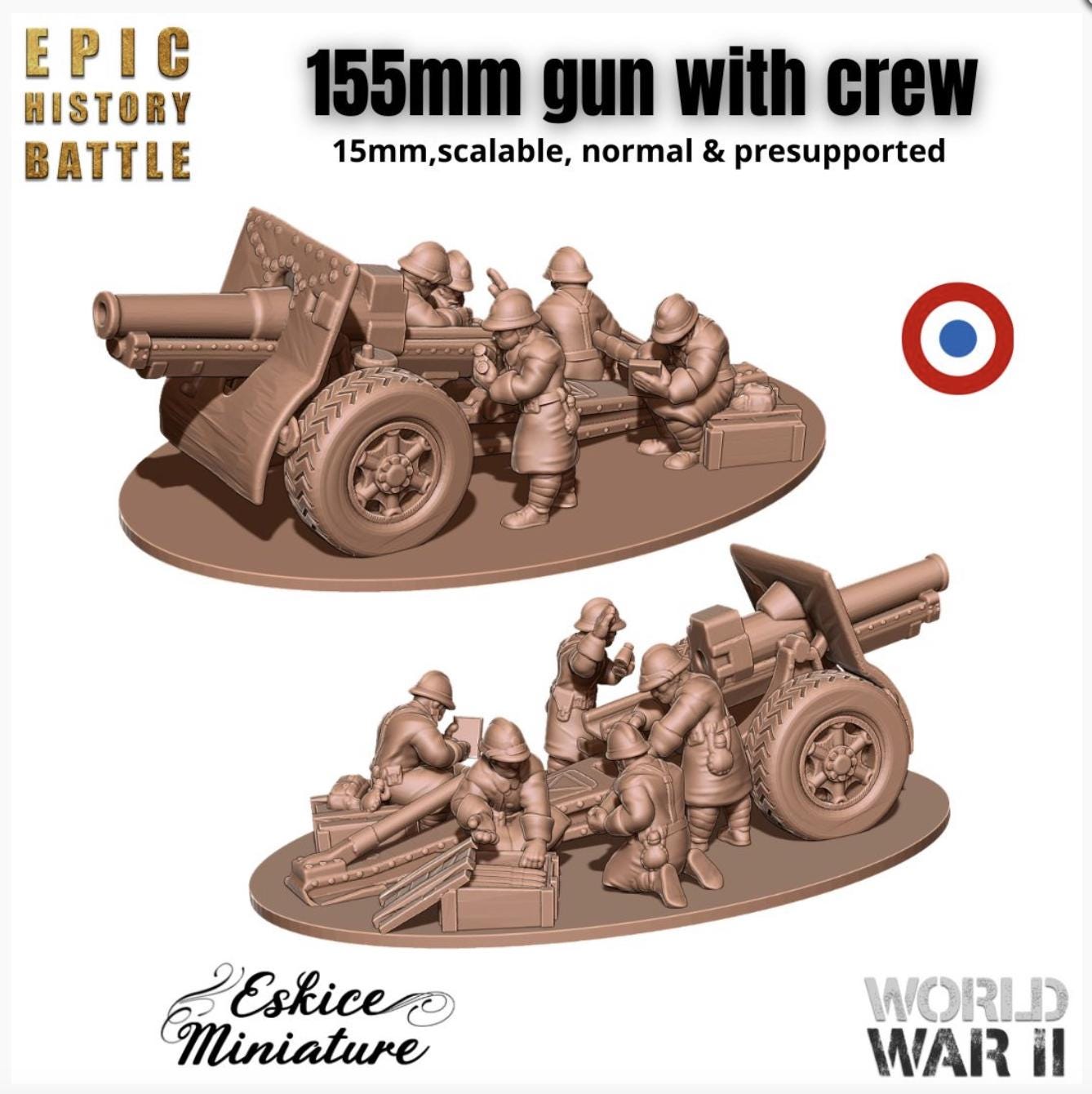 15mm WWII- French 155mm artillery gun with crew - 15mm for EHB - 3 Guns