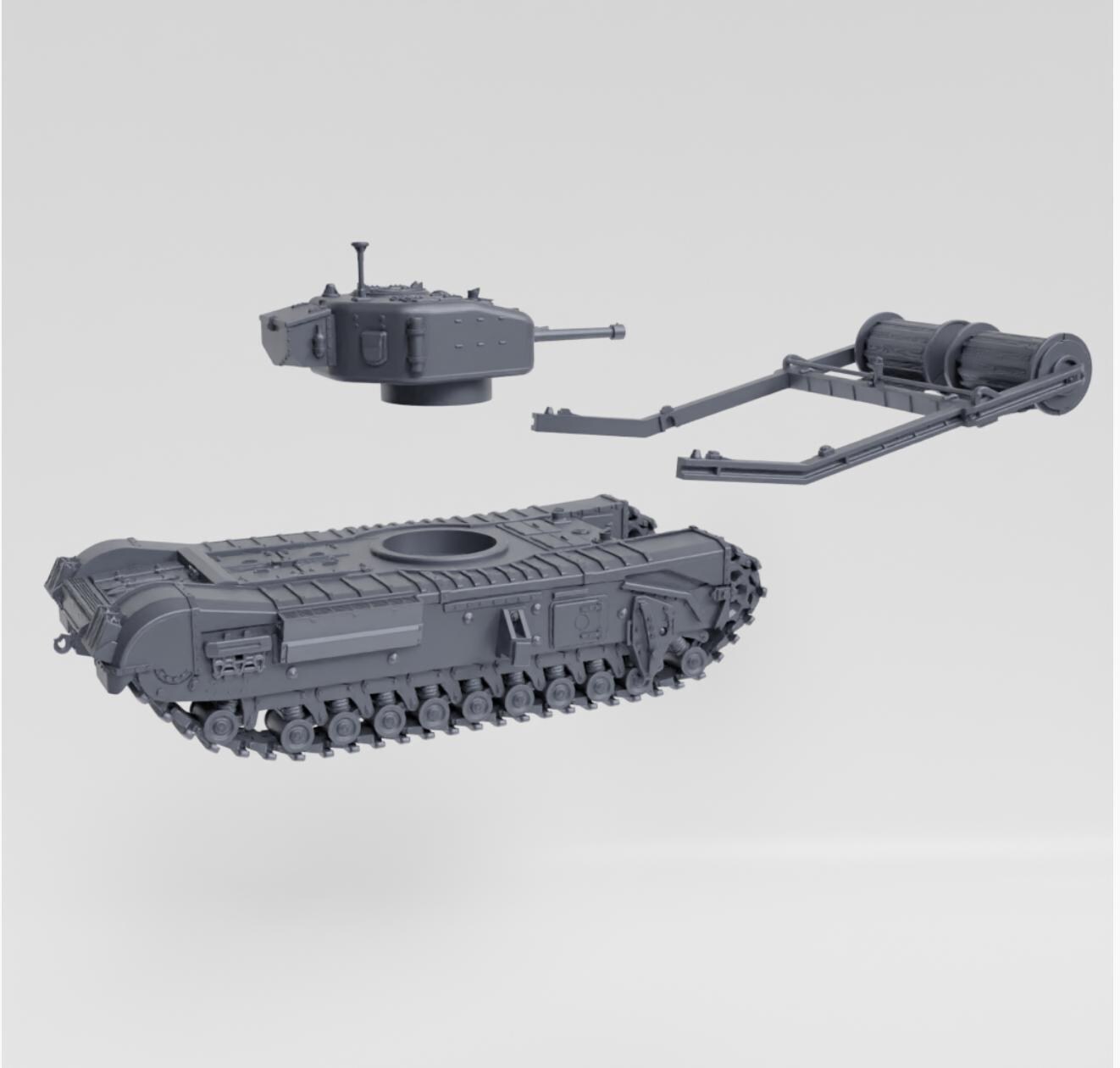 28mm World War 2- Resin Printed Churchill AVRE Mk.IV with Bobbins Type B (UK, Ad-hoc, WW2)