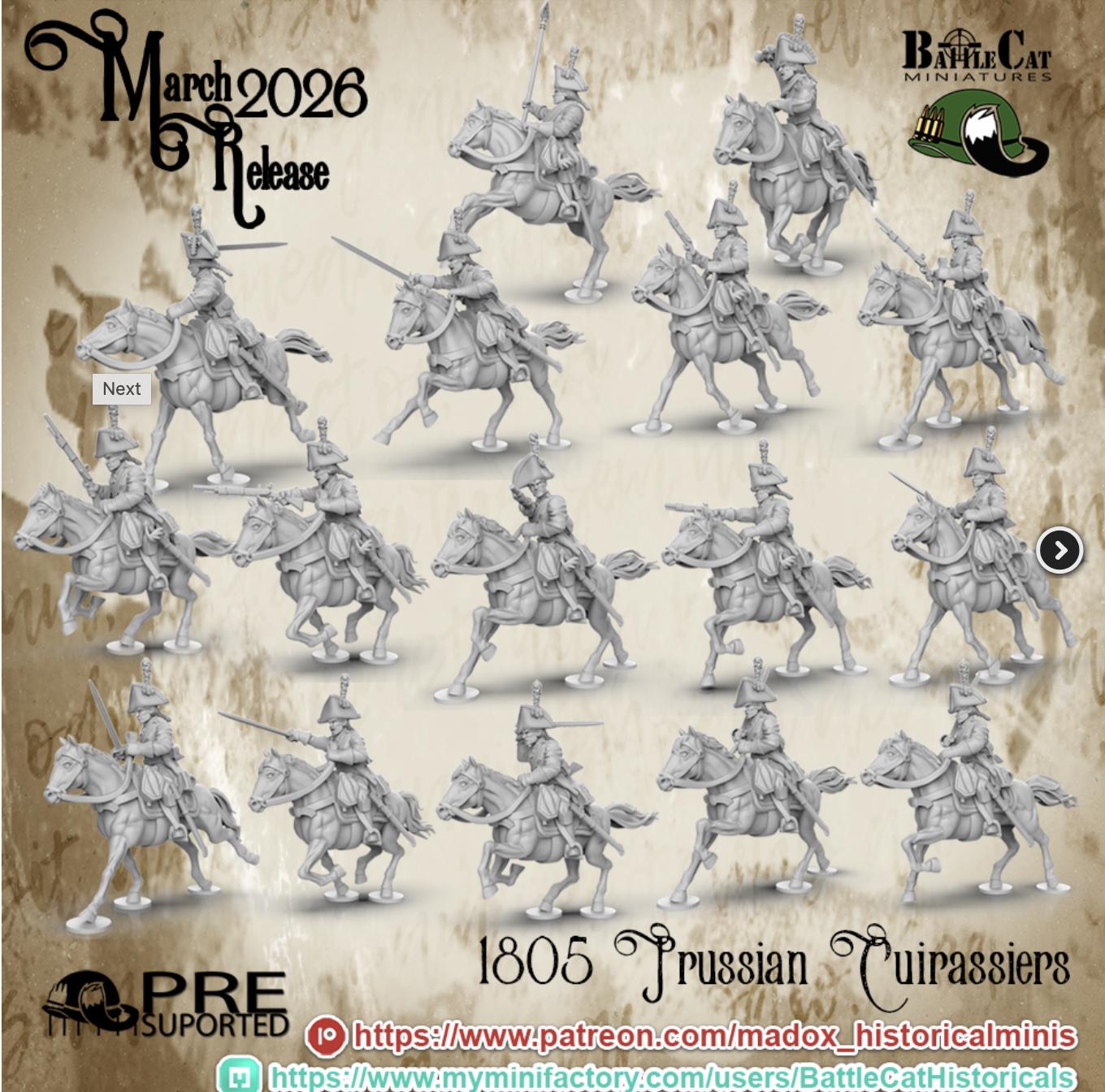 28mm Historical Gaming- Resin Printed Figures- 1805 Prussian Cuirassiers (Squad of 10)