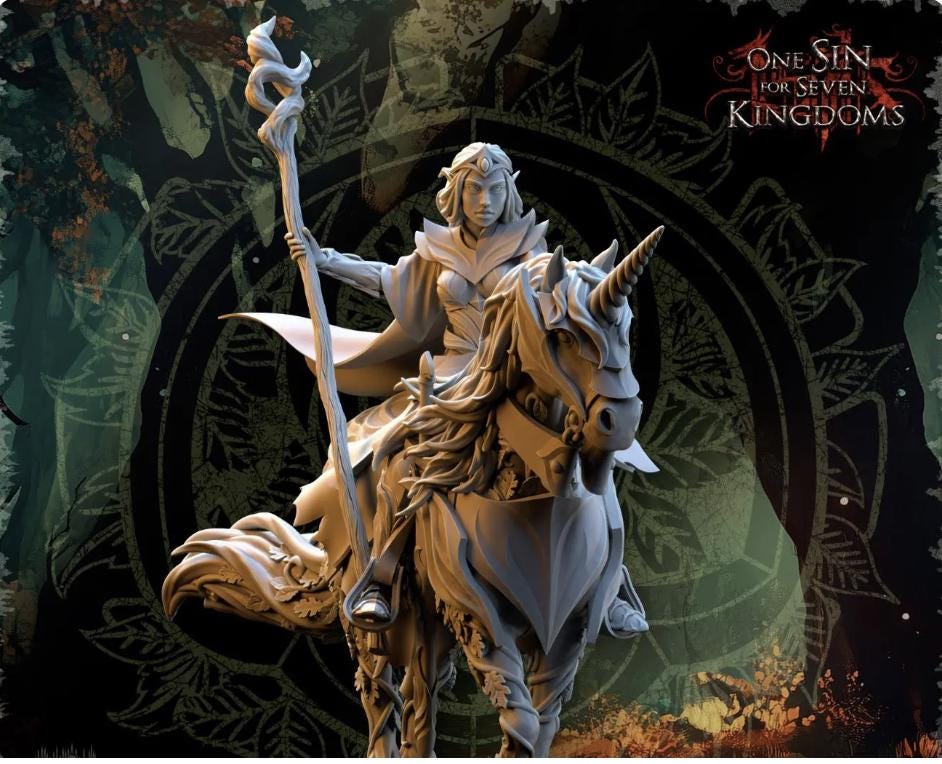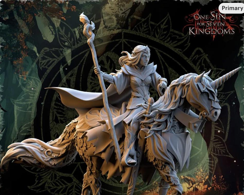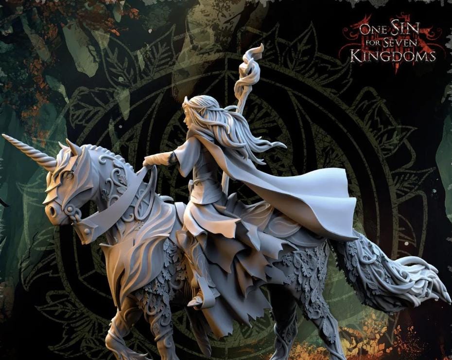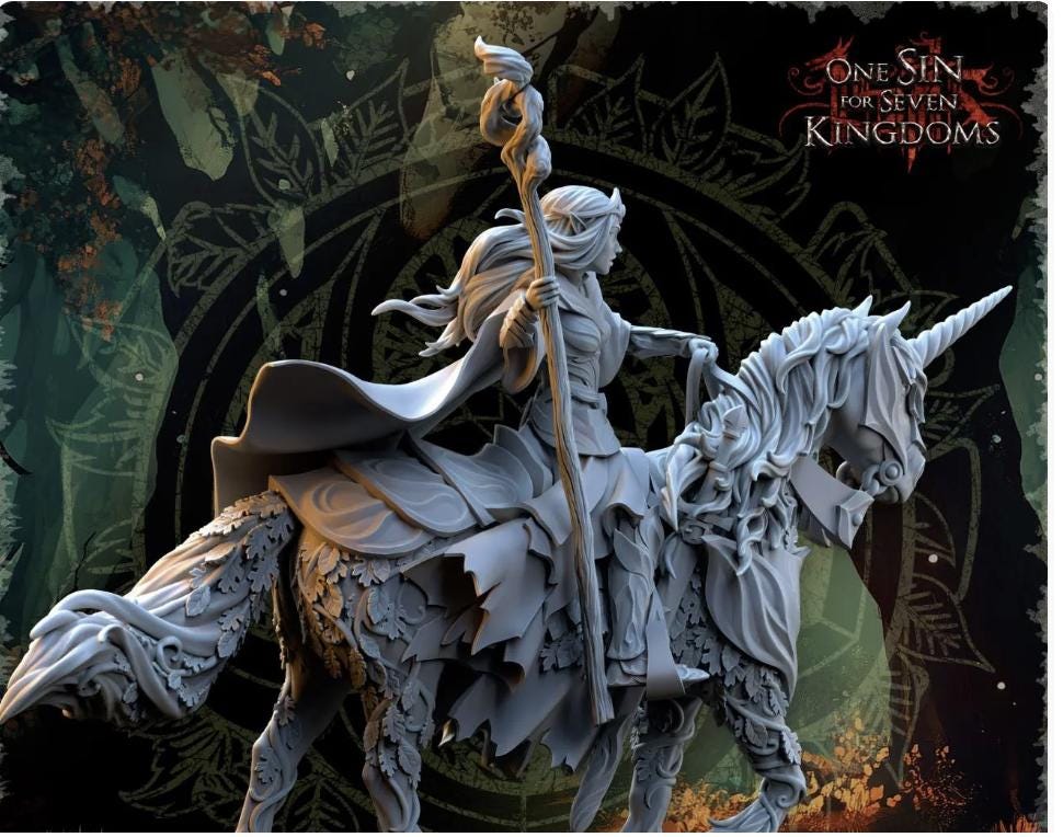 Resin Fantasy Models-Evergreen Elves Nuara, Whisper of the Trees on Horseback -28mm Heroic Scale