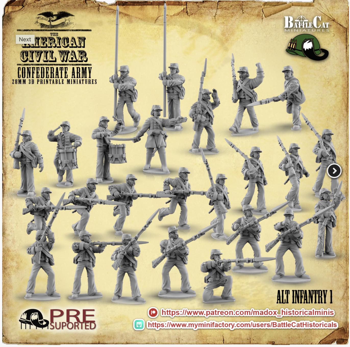 28mm American Civil Way Gaming- ACW Confederate Alt Infantry I (Squad of 20 Including Command)