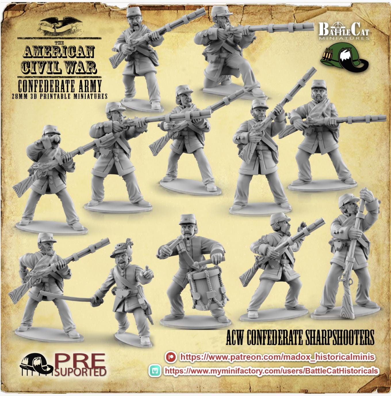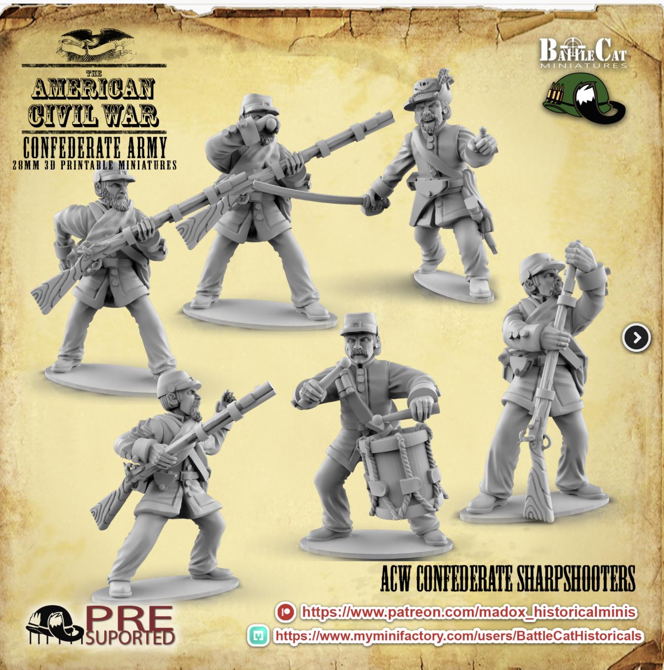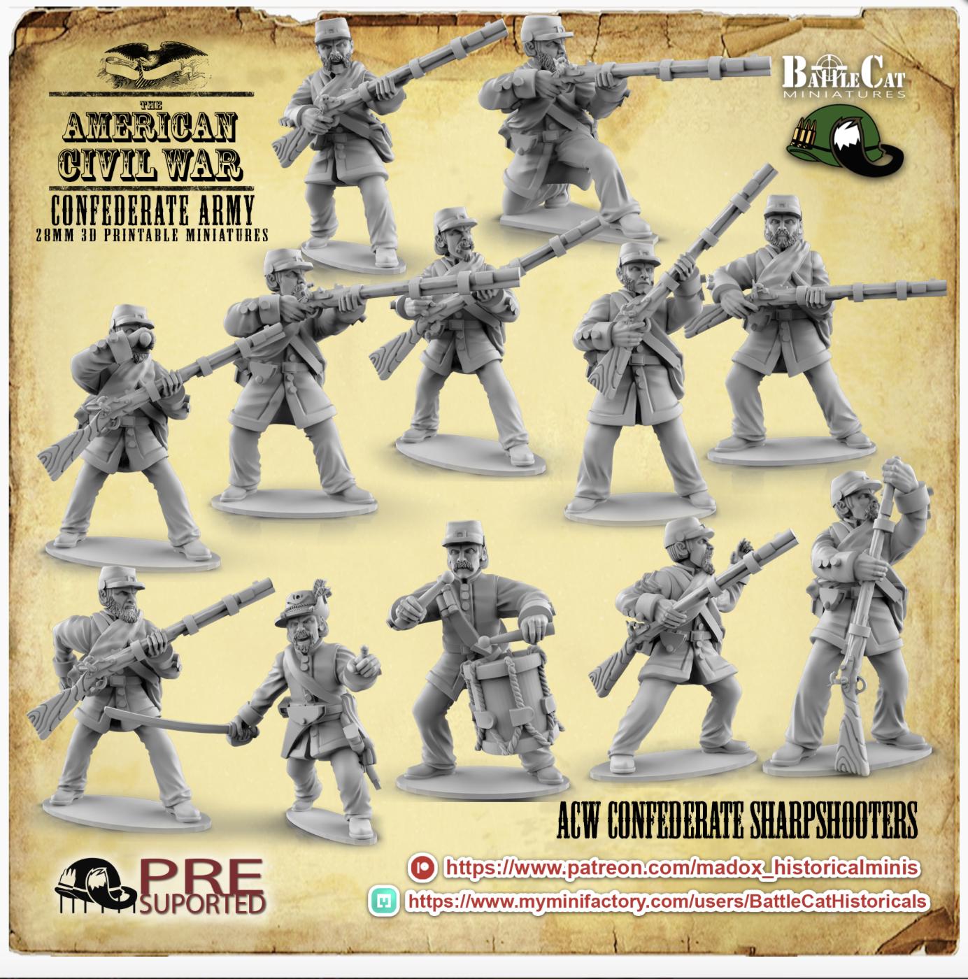 28mm American Civil Way Gaming- ACW Confederate Sharpshooters (Squad of 20 Including Command)