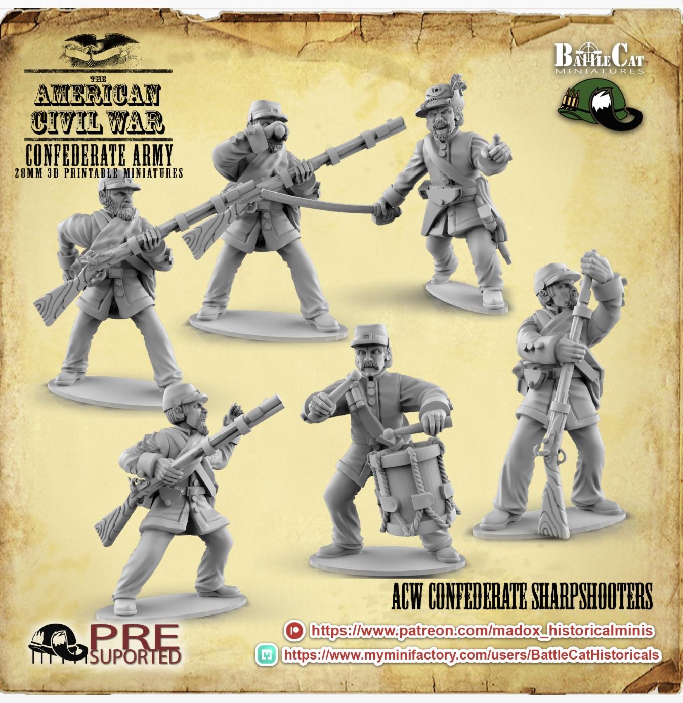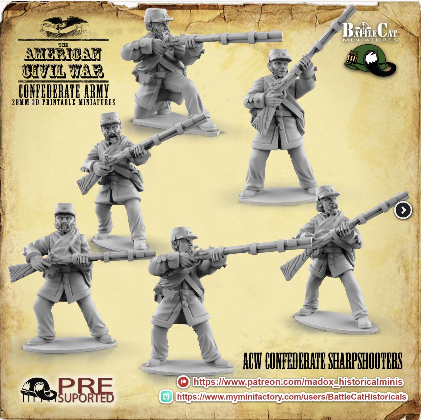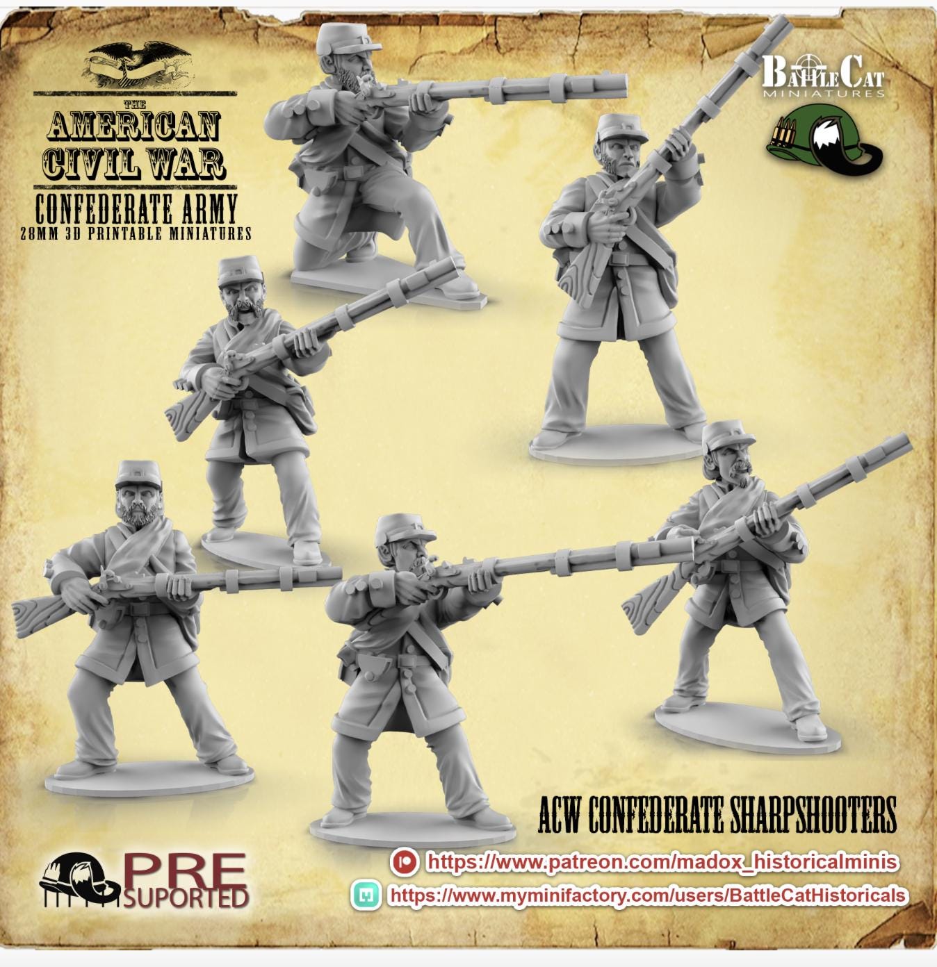 28mm American Civil Way Gaming- ACW Confederate Sharpshooters (Squad of 20 Including Command)